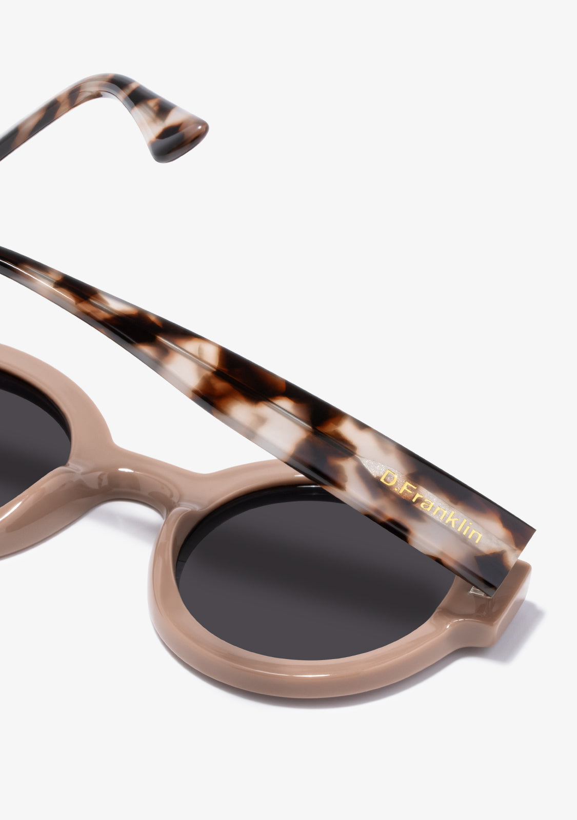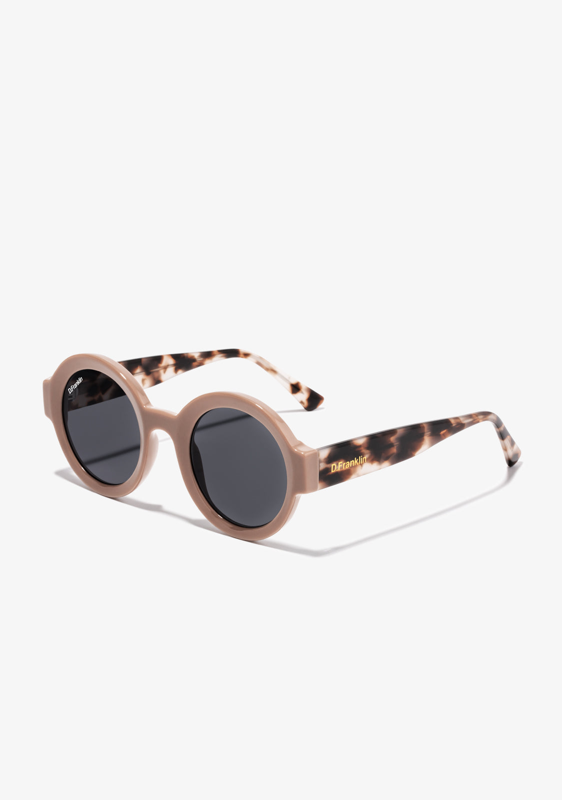 Round-rimmed sunglasses in brown tones. A distinctive piece for your most daring outfits.