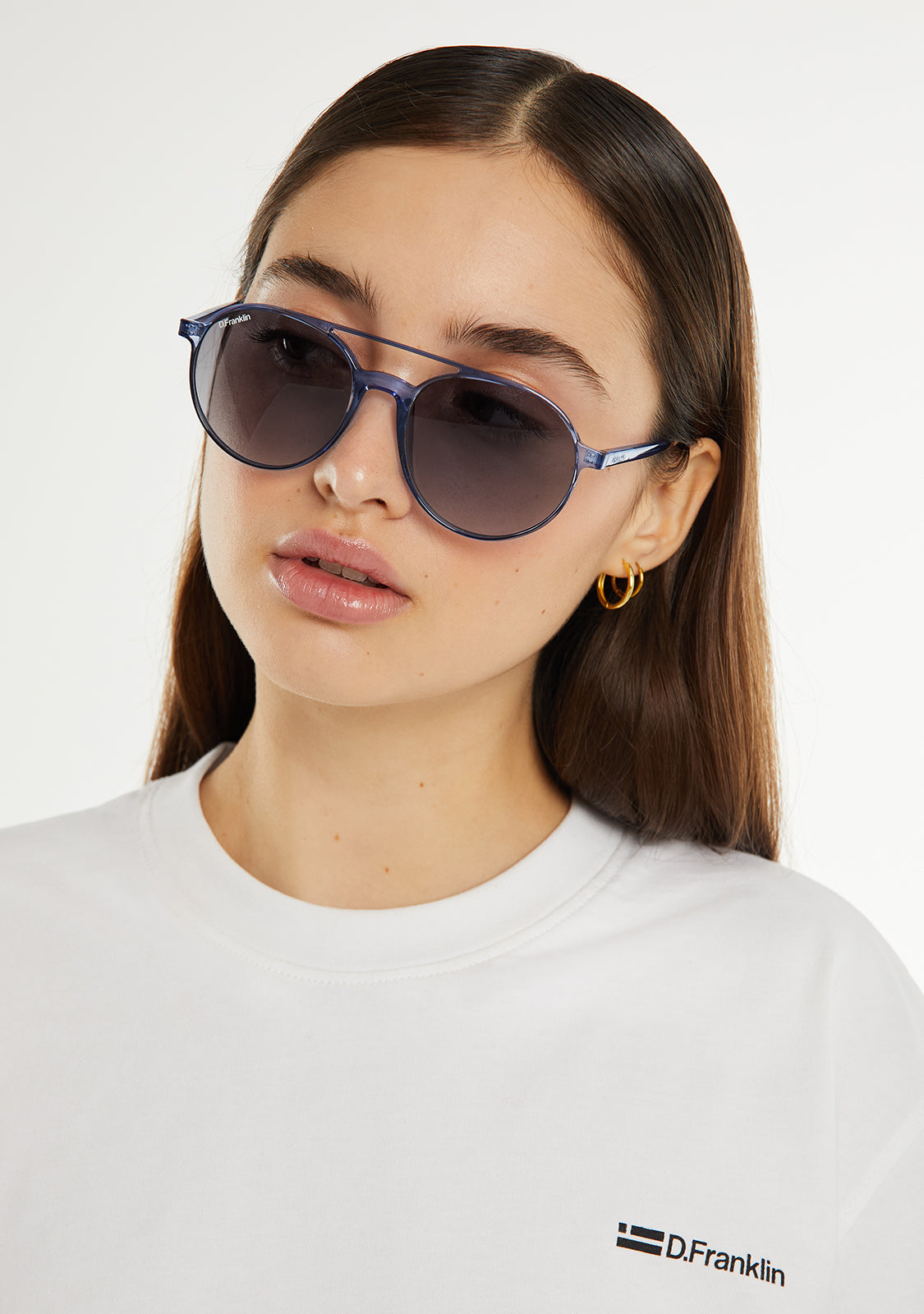 Our America model in blue tones has the distinctive details of the D.Franklin brand, the logo engraved on the temples and the emblem on the lens. The lens width is 54 mm and the front is 139 mm. The side temples have a length of 145 mm.