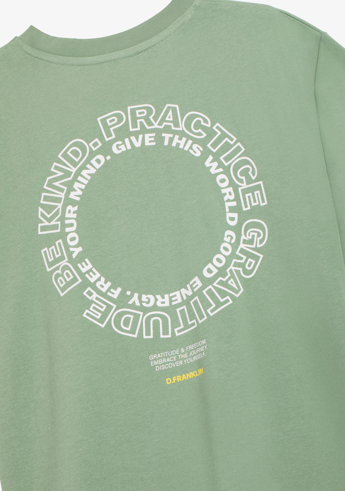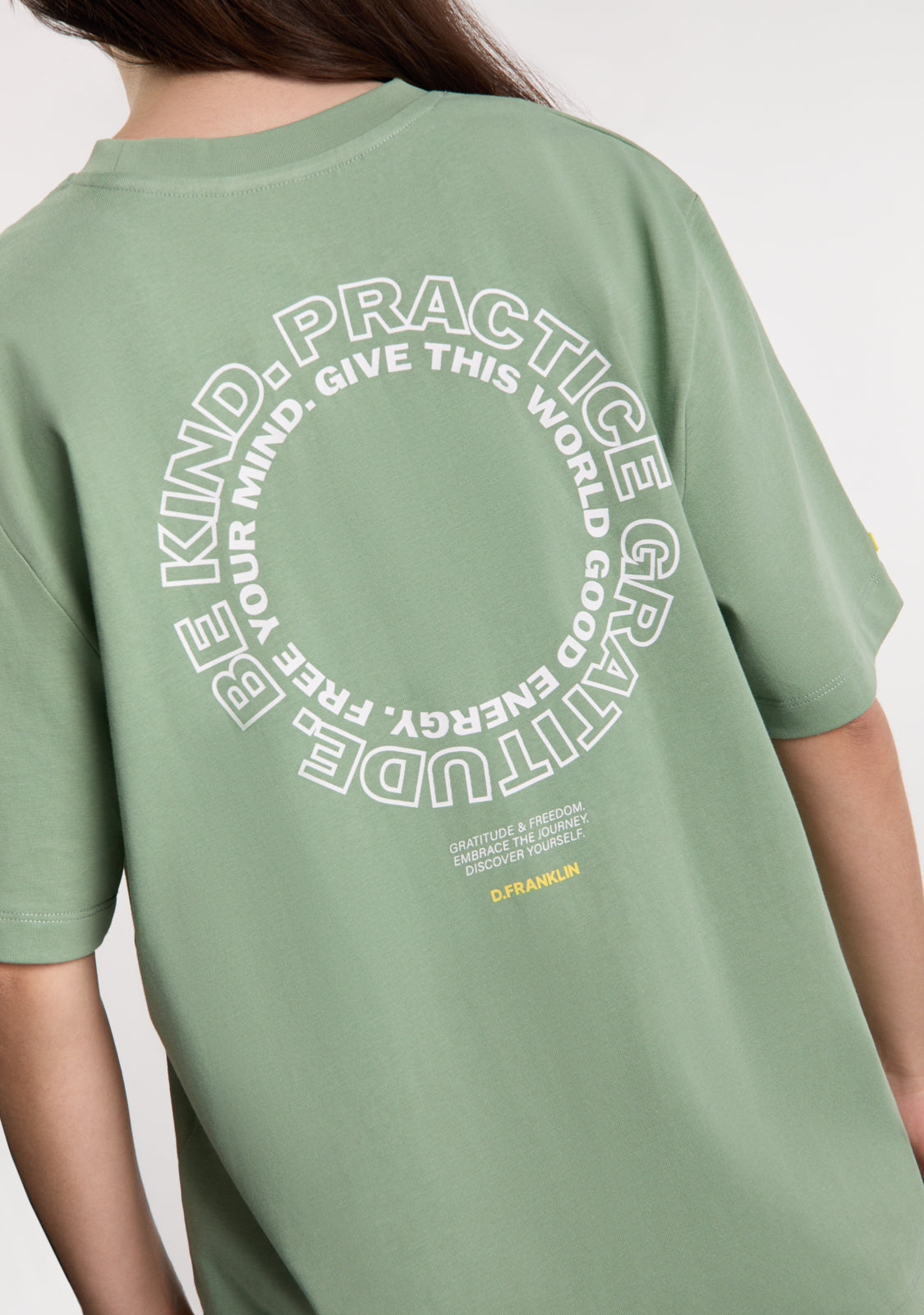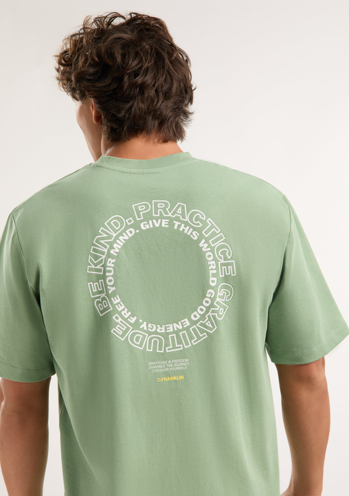 The Be Kind T-Shirt Sage Green by D.Franklin is a basic t-shirt with a lot of style. Made from 100% 230 GMS cotton, it is soft and comfortable, perfect for everyday wear. Its loose fit and round neck give it a relaxed and modern touch, allowing for great freedom of movement.
