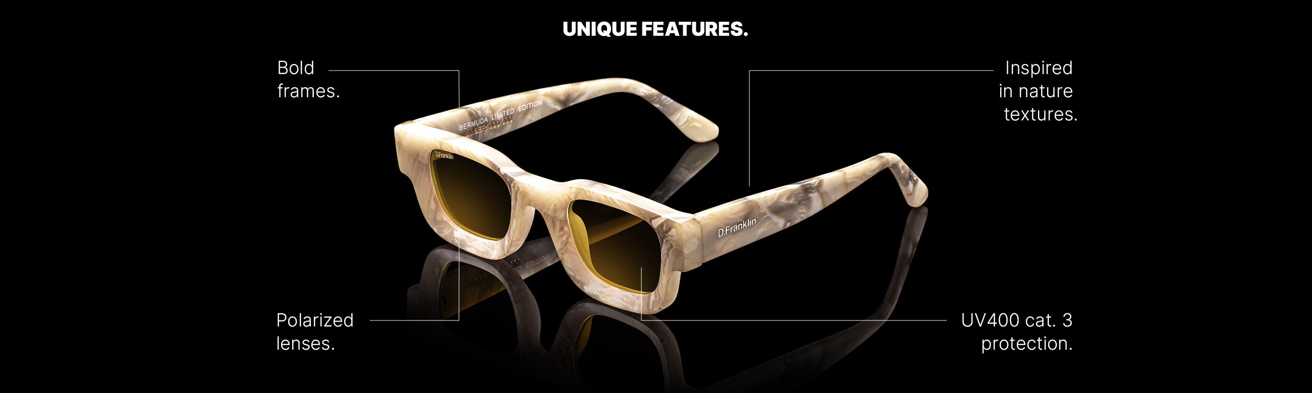 The Bermuda Collection is the ultimate expression of exclusivity. The number of your eyewear can be found on the inside of the right temple. Dare to look through our prism.