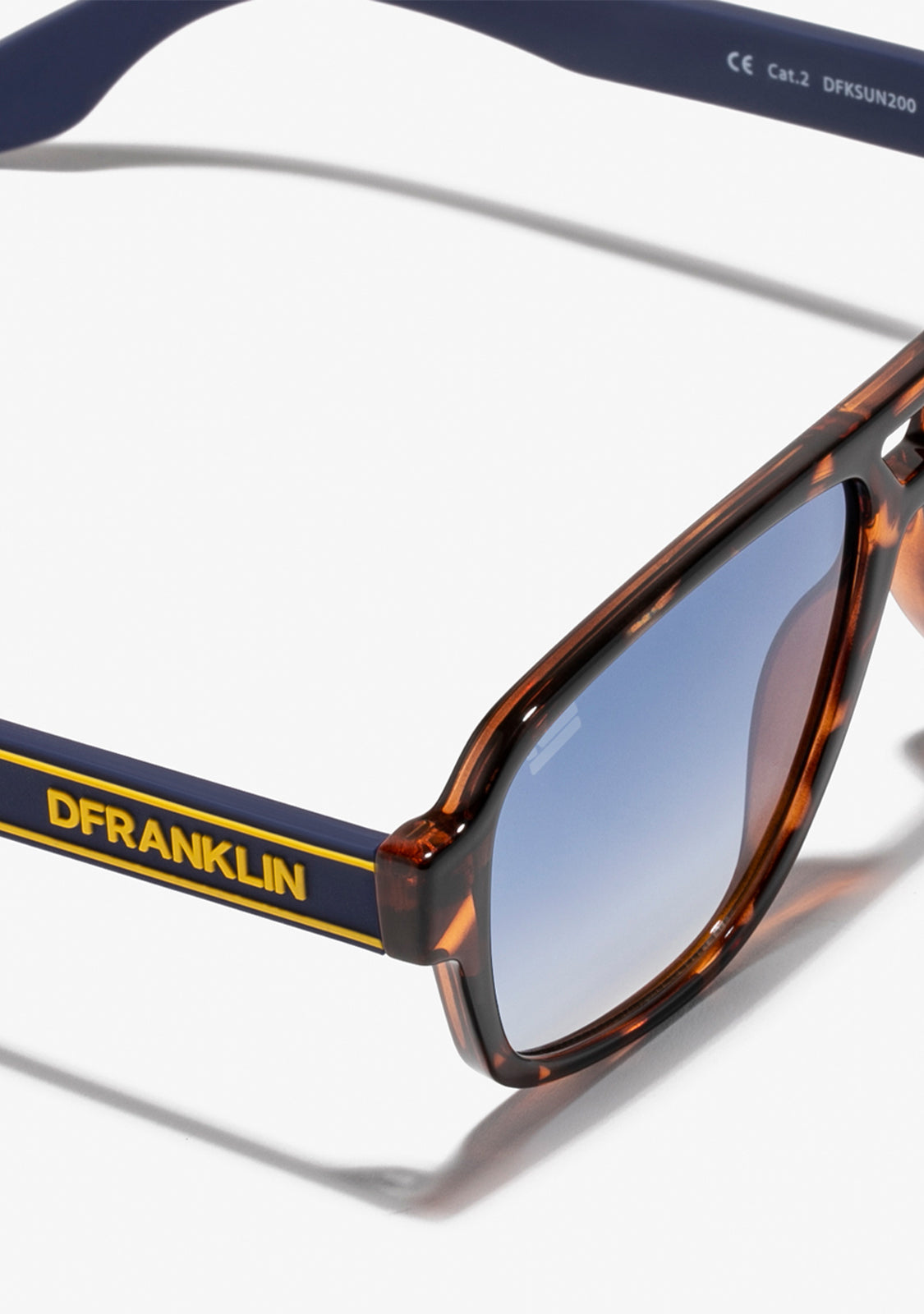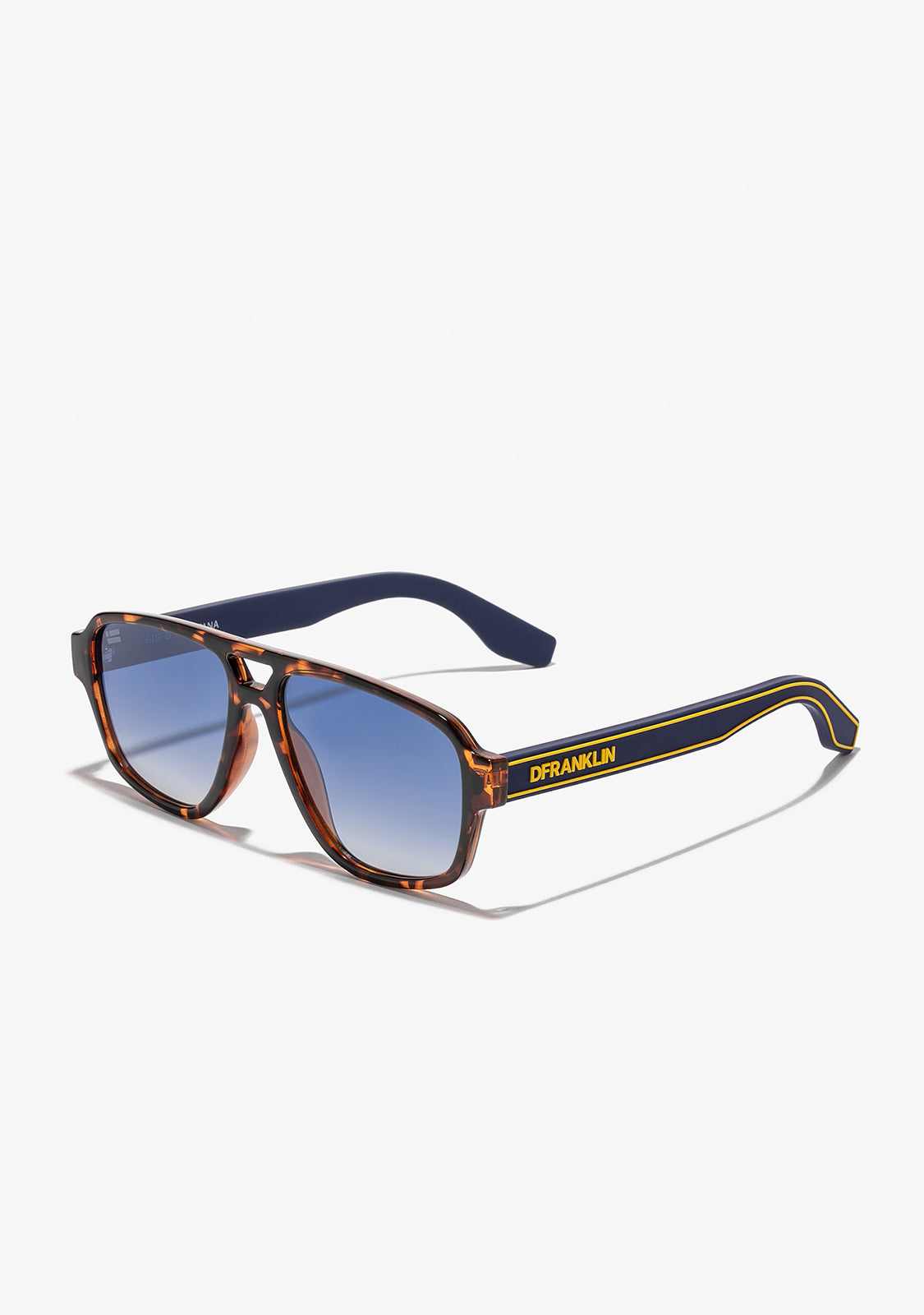 Sunglasses with an extralight frame and stylish design that evokes the most iconic models of the 80s. This is Big D Montana Carey / Grad Blue Flash model. A design that stands out by its double bridge, its elegance and the quality of its materials. Now with this improvements: