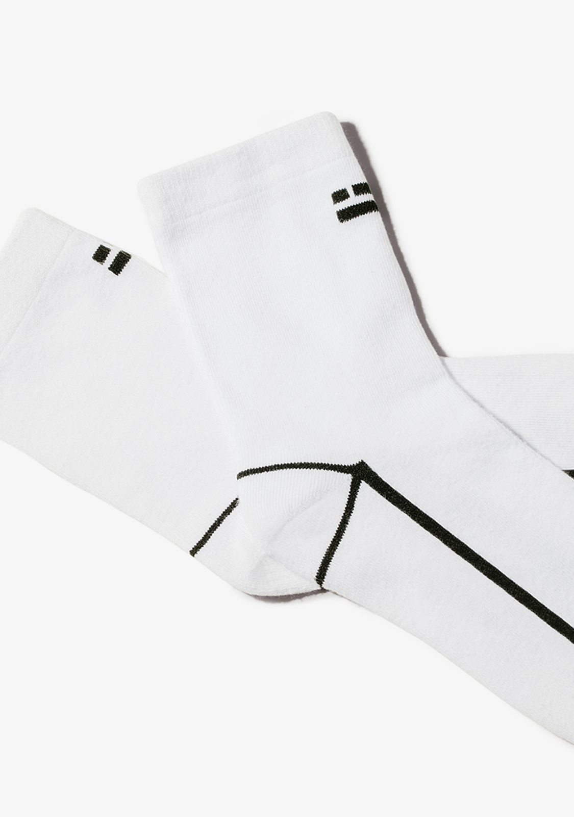 Two-pack of comfortable, versatile socks made for everyday wear. The Black & White Lines Socks 2 Pack features colour-block designs in sand and peach tones, adding a modern touch to any look. With a round cut that fits smoothly around the foot, they offer secure support without feeling tight. Branded details add style and personality. Perfect to pair with trainers or sports footwear.