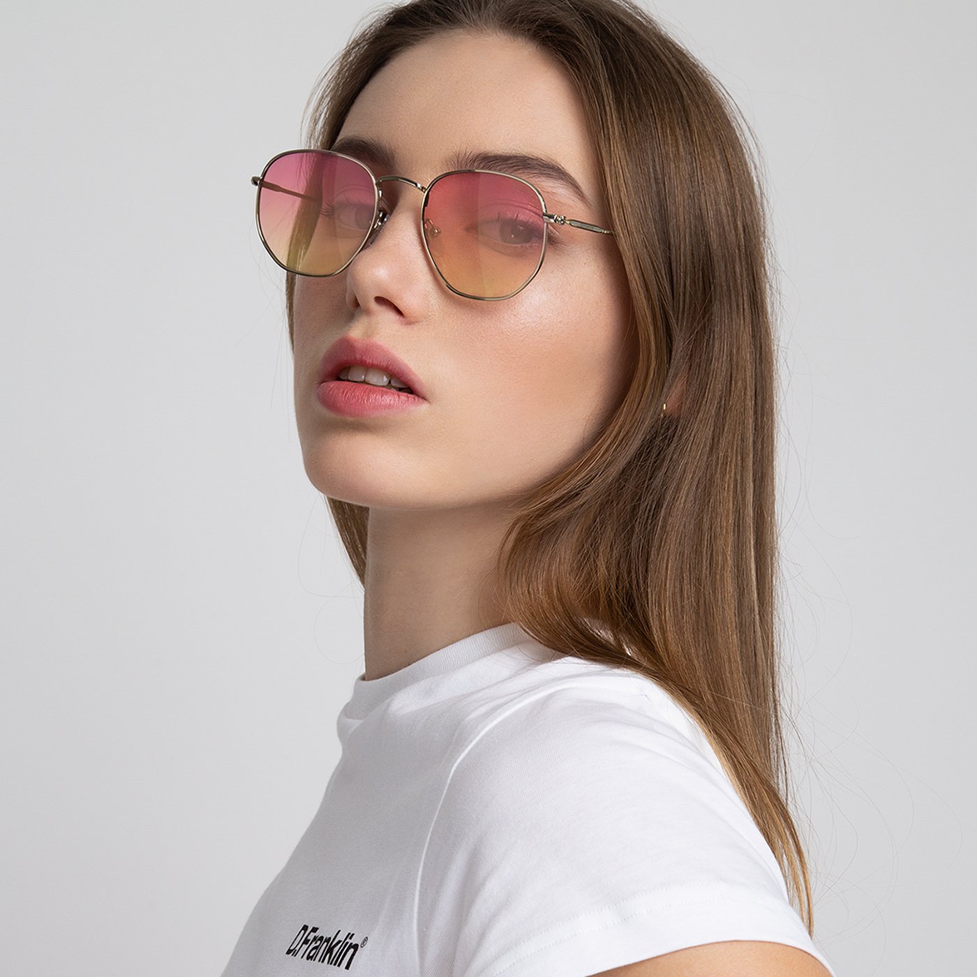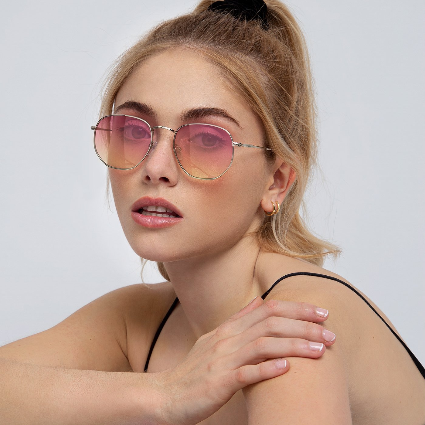 The geometry of a unique style. The Hexagon collection redefines retro style through its hexagonal mount and combination of materials. The Classic Hexagon Silver / Grad Flash Pink inspires with their angles the most characteristic styles of the 60s through its ultra light frame in silver finish and degraded lenses in soft pink tones.