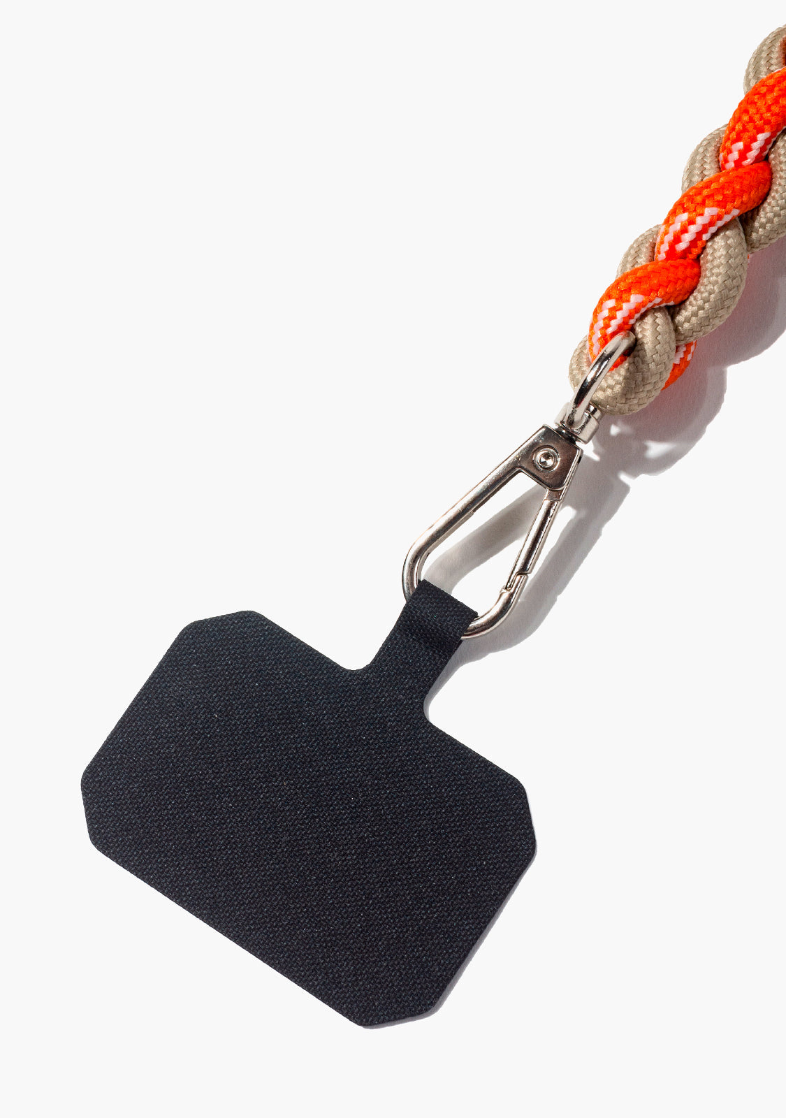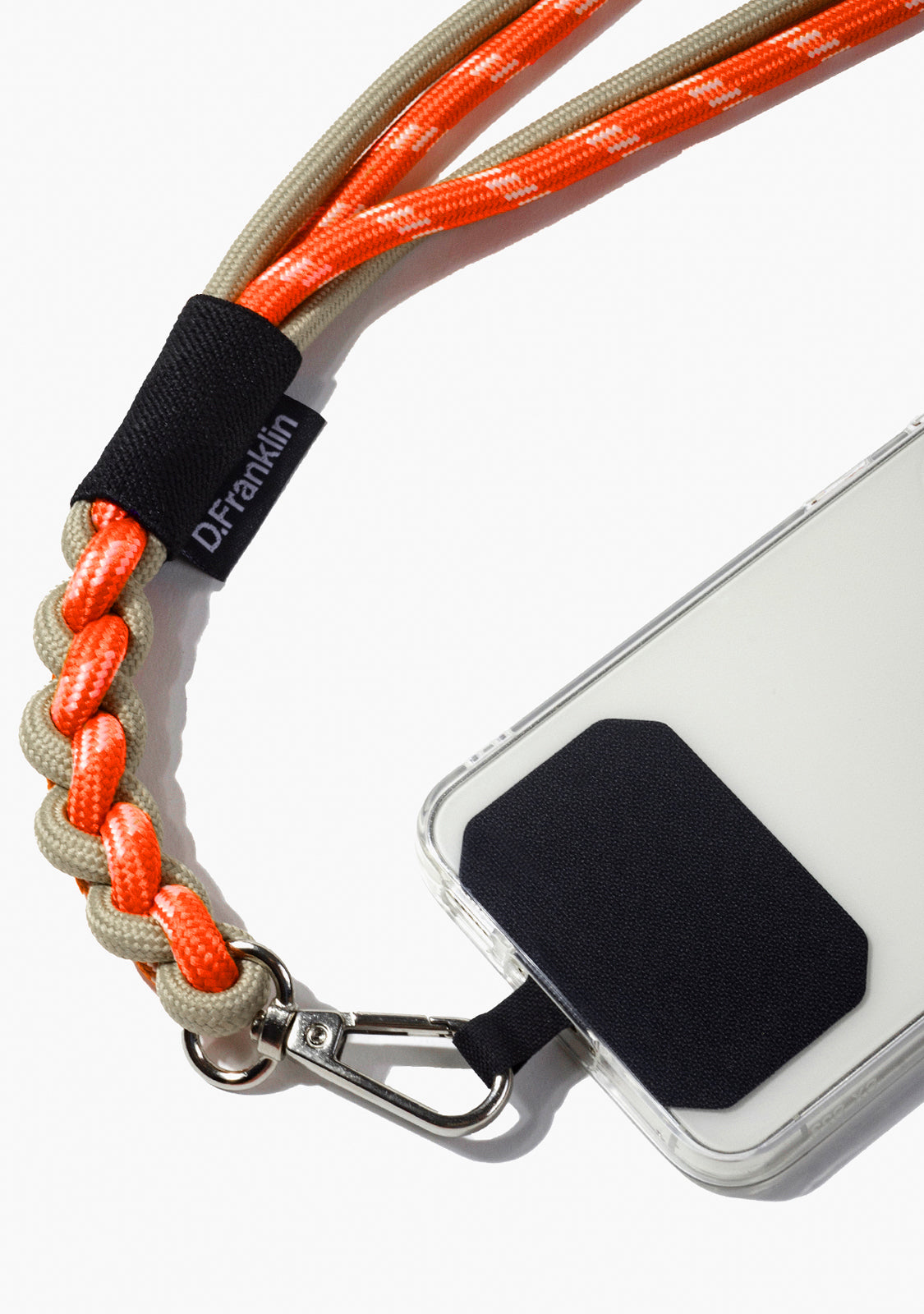 D.Franklin lanyard with screen-printed logo in peach and safety closure.