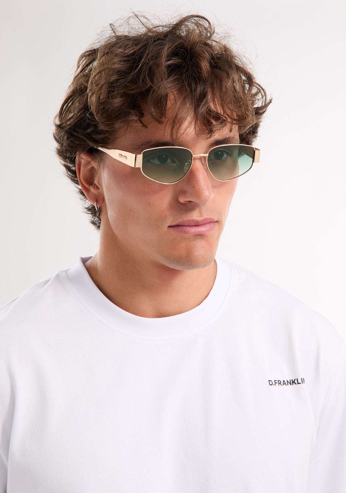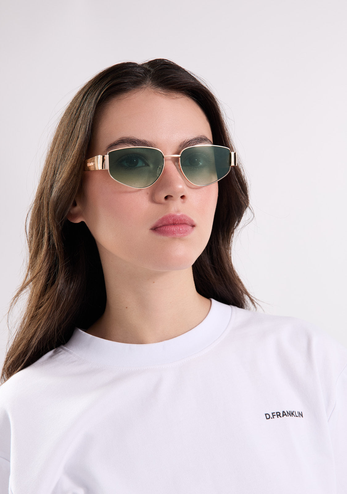 The Cuprum Pilot Gold / Gradient Green sunglasses by D.Franklin combine style and functionality. Their durable metal frame ensures sophistication and longevity, while the polycarbonate lenses provide clear vision and complete UV protection.