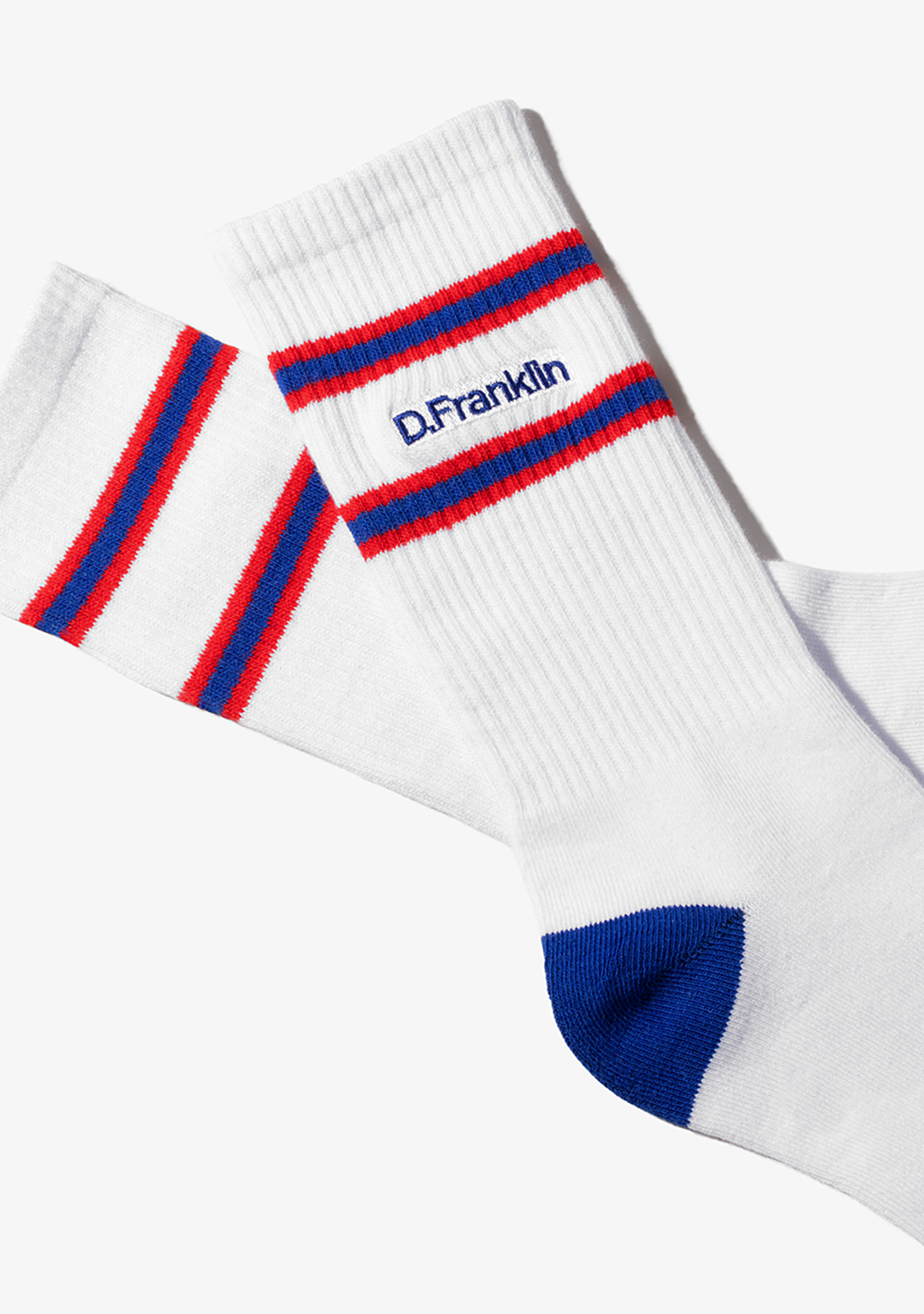 Two-pack of comfortable, versatile socks made for everyday wear. The DF 6 Stripes Socks 2 Pack White-Blue features colour-block designs in sand and peach tones, adding a modern touch to any look. With a round cut that fits smoothly around the foot, they offer secure support without feeling tight. Branded details add style and personality. Perfect to pair with trainers or sports footwear.