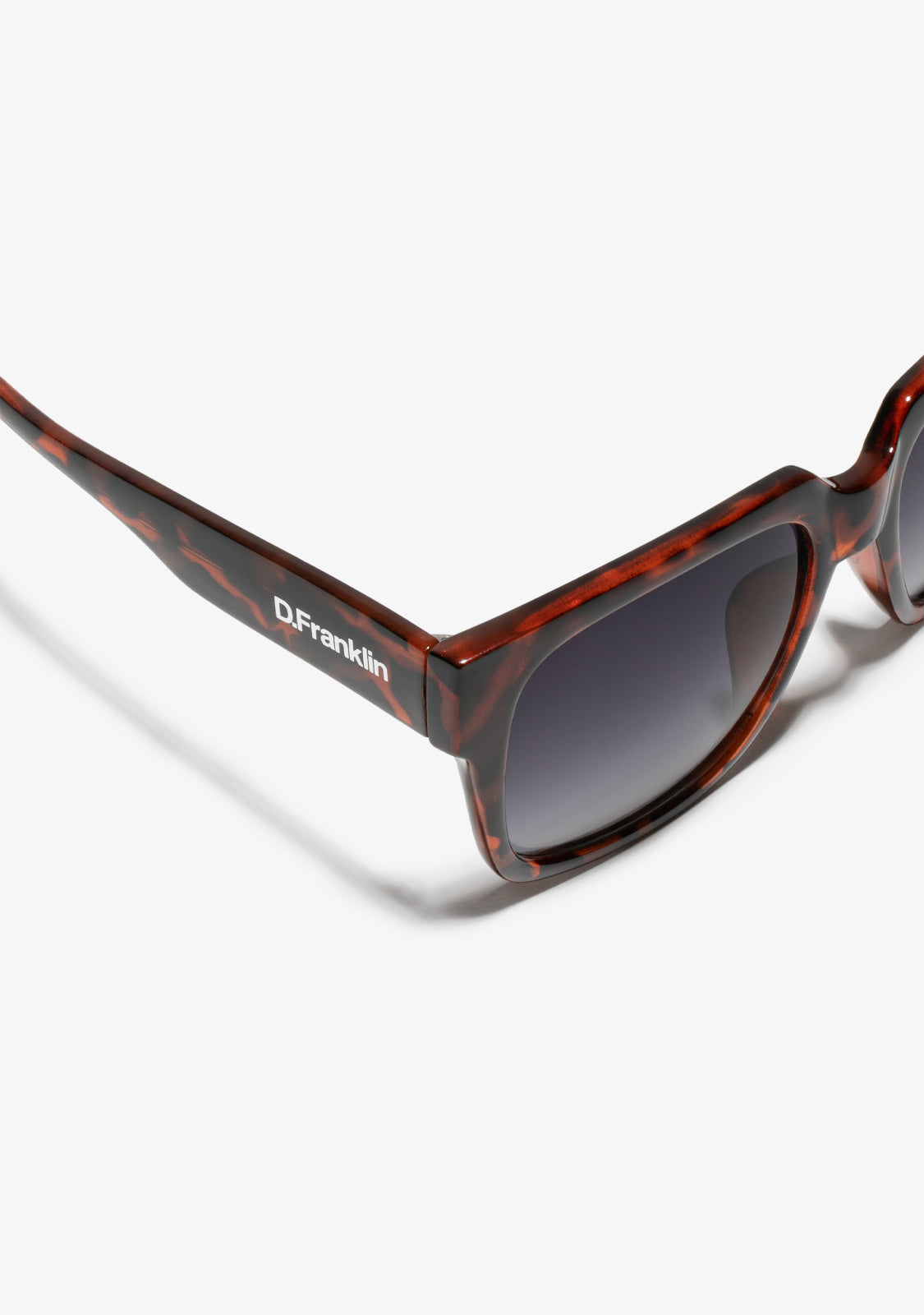 Sunglasses with an extralarge frame and a trendy seasonal style. This is D.Franklin Dunar Demi / Black model. A daring and rule-breaking design that suits the different textures and effects of its characteristic squared frame.
