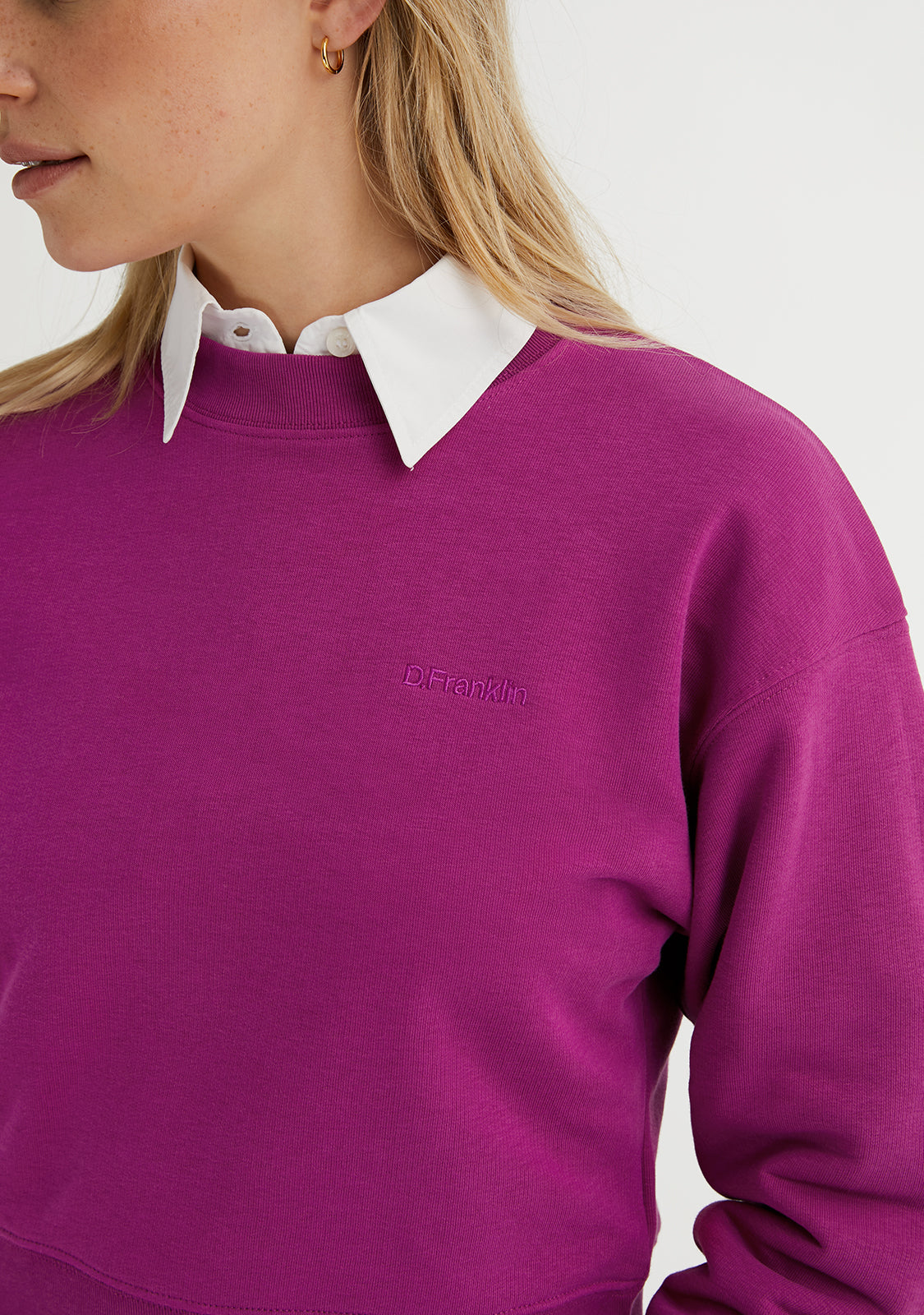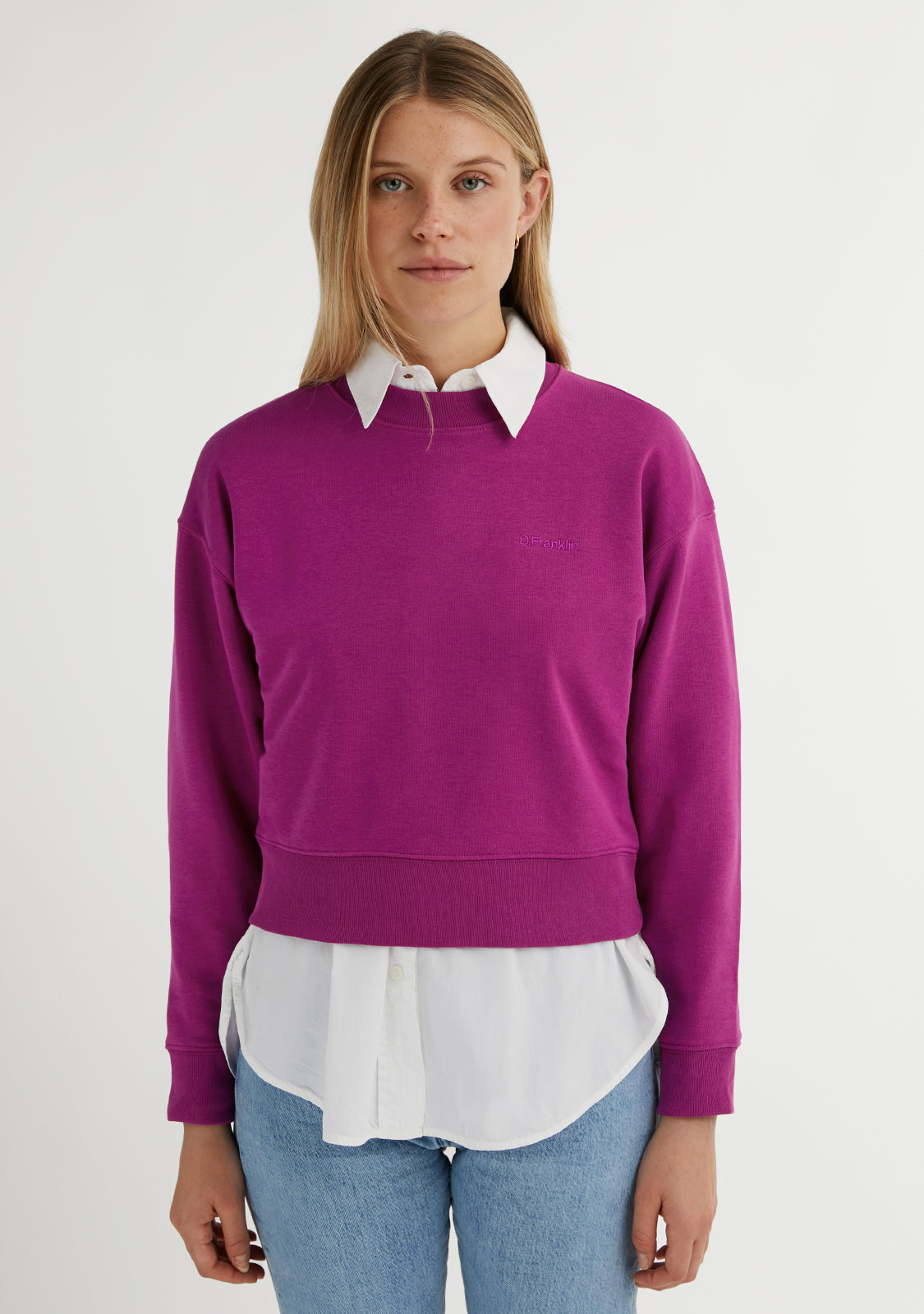 Join the D.Franklin fashion with our latest collection of sweatshirts. Simple and comfortable, they are the perfect combination of basic, mix-and-match colors and the brand's logo application. The Embroidery Logo Cropped Crew Neck Sweatshirt / Orchid is made with the best materials, which gives it great breathability and elasticity.