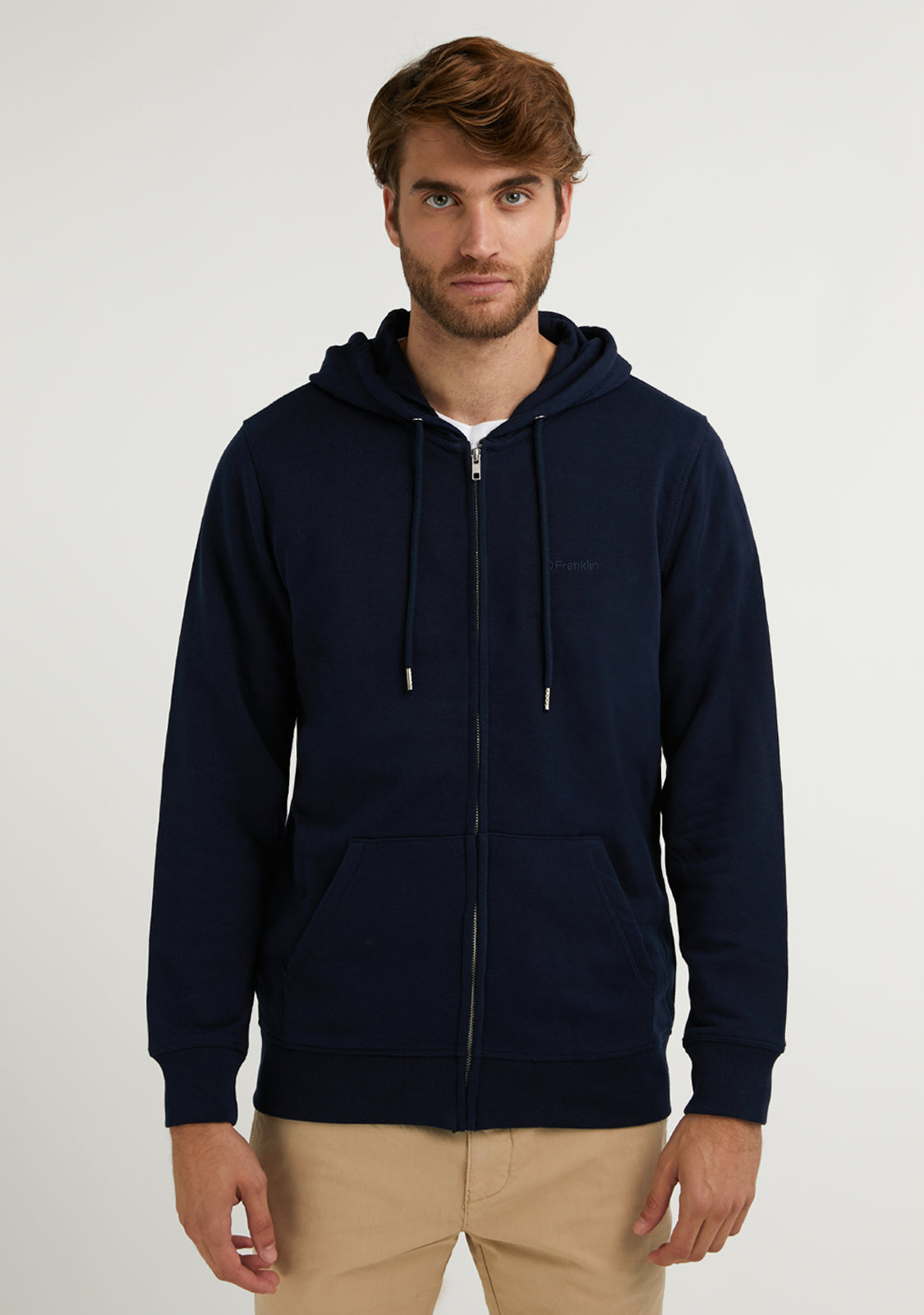 Join the comfy trend with our Embroidery Logo Zip Hoodie Navy. Features a covered centre front zip and hood. Made from organic cotton. Convenient kangaroo pocket. Close-fitting sleeves. It will give you great breathability, stretch and comfort.