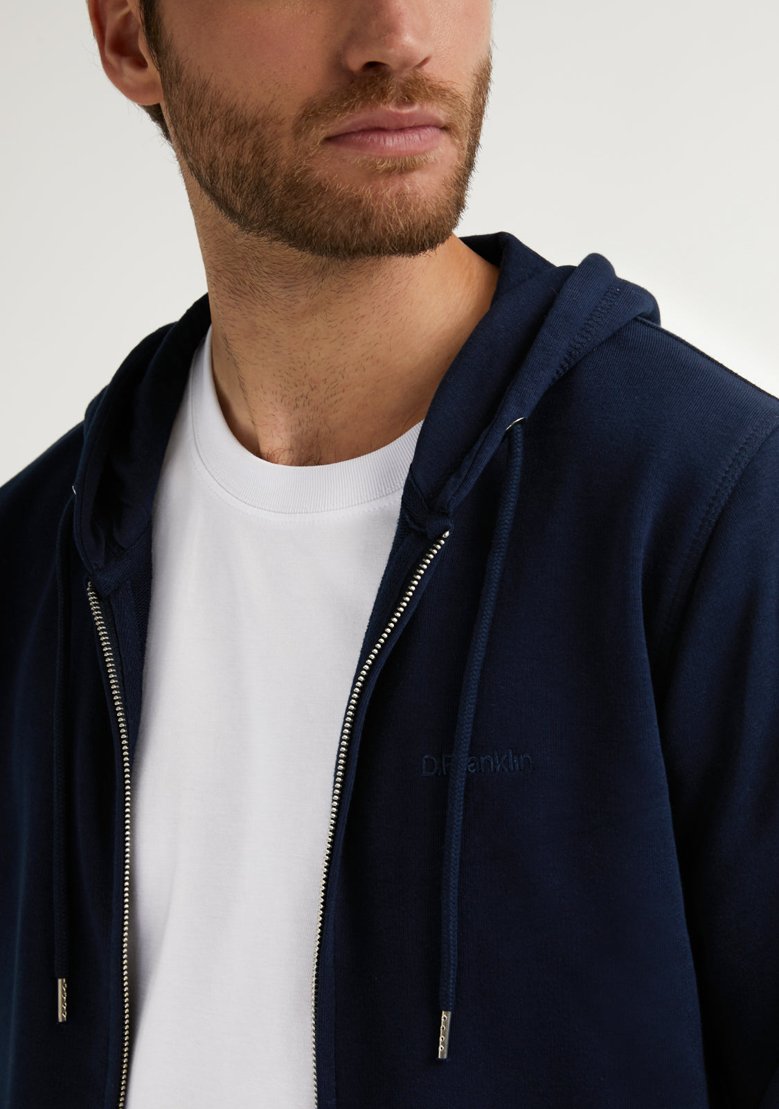 Embroidery Logo Zip Hoodie Navy