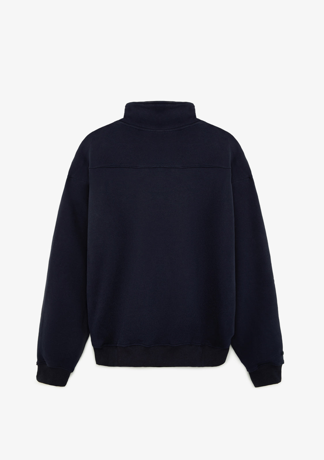 Half-Zip Sweatshirt Navy is a unisex sweatshirt that combines comfort with modern structure. The half-zip collar adds flexibility to your fit, while the defined seams break the plainness for a more dynamic look.