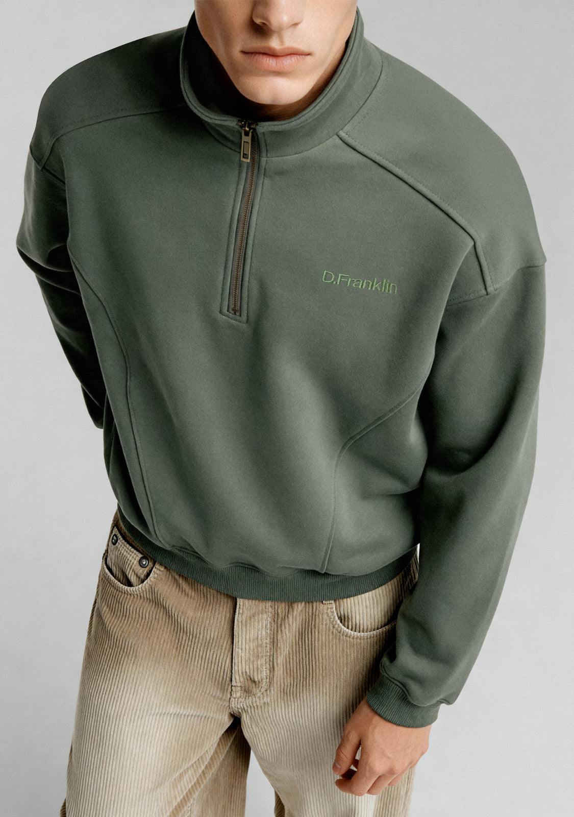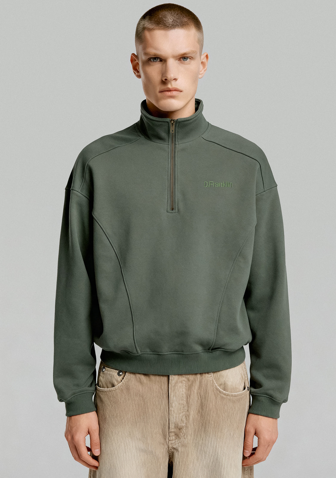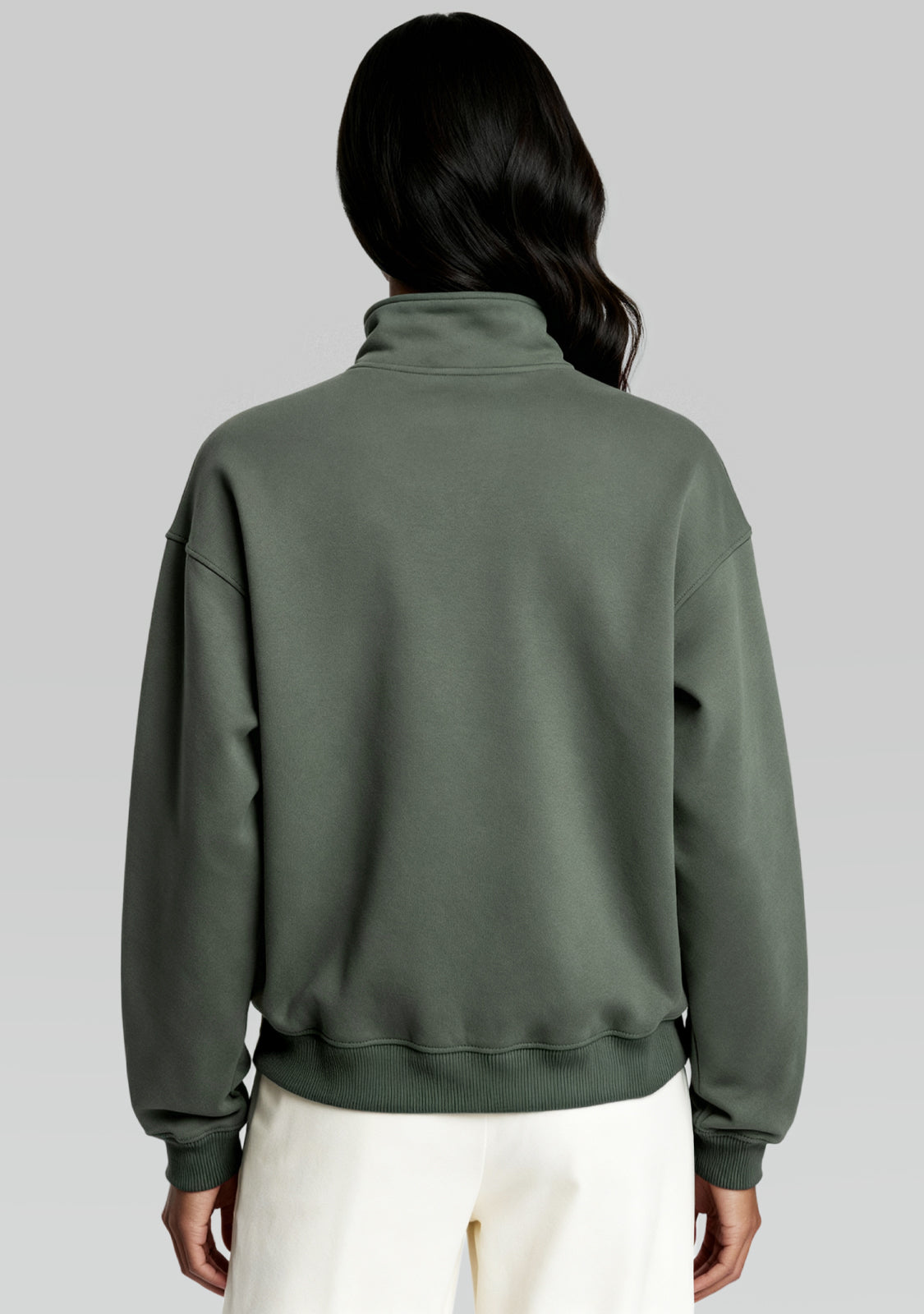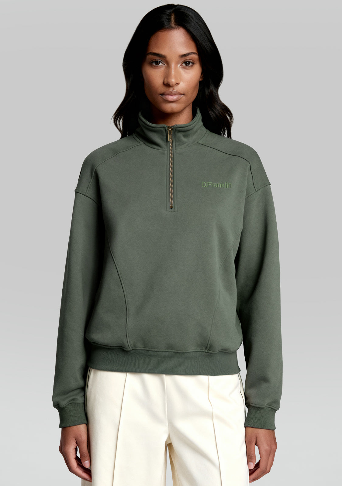 Half-Zip Sweatshirt Sage Green is a unisex sweatshirt that combines comfort with modern structure. The half-zip collar adds flexibility to your fit, while the defined seams break the plainness for a more dynamic look.