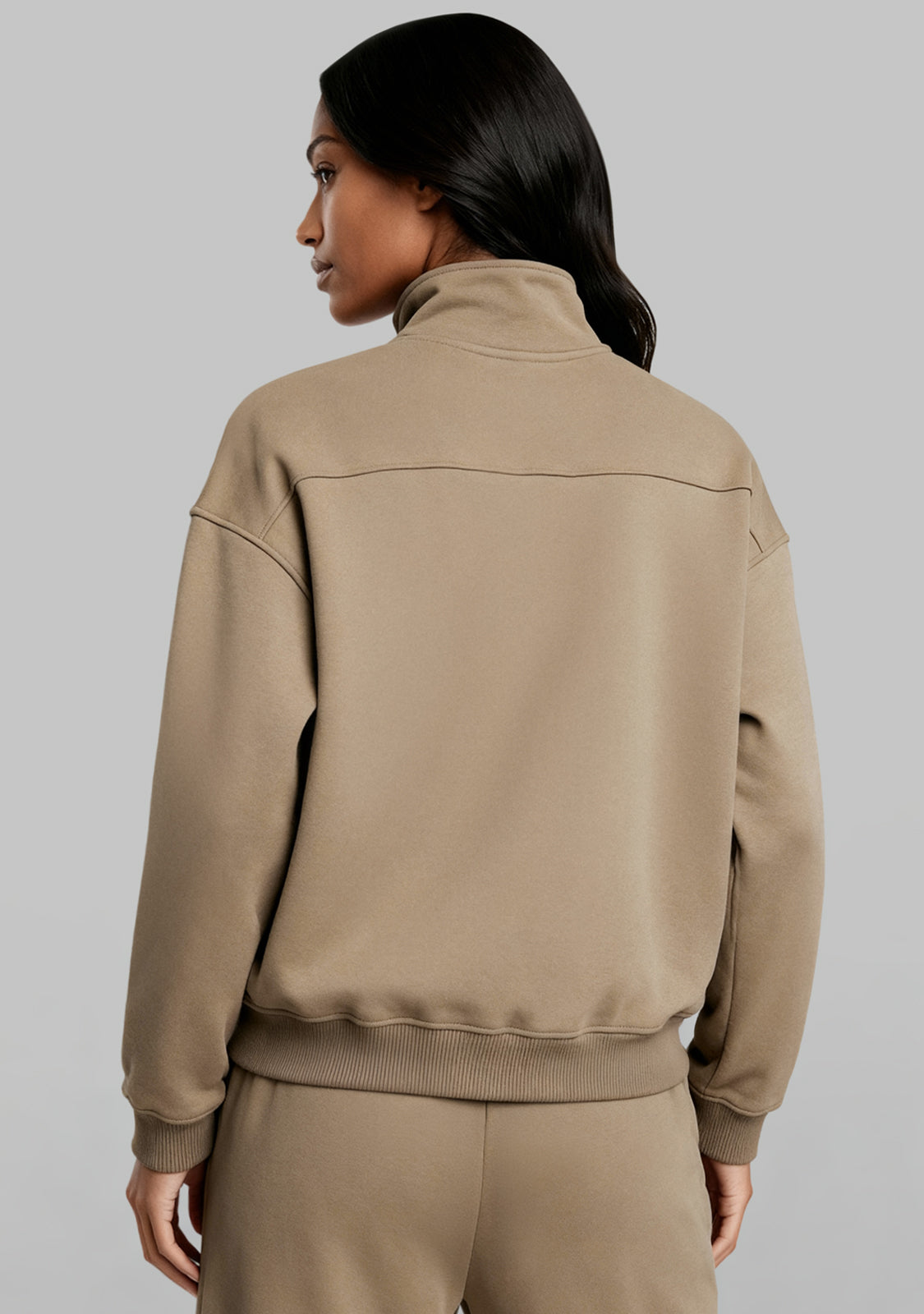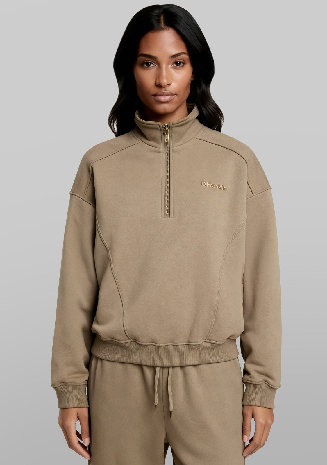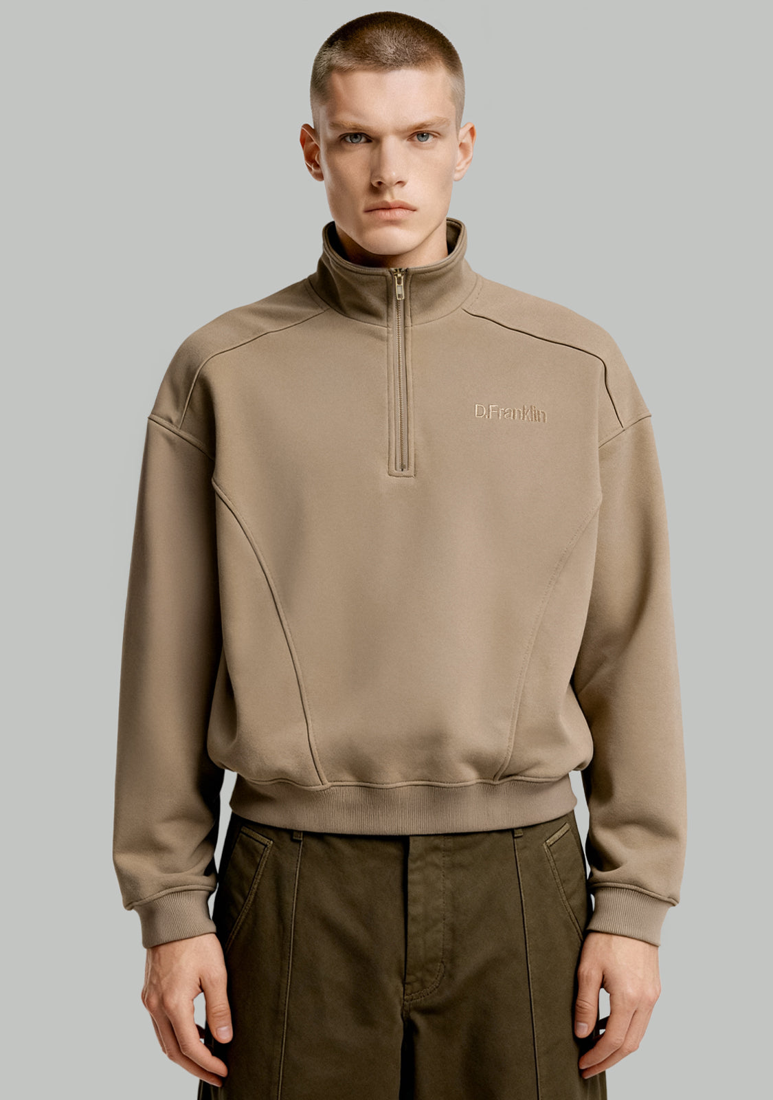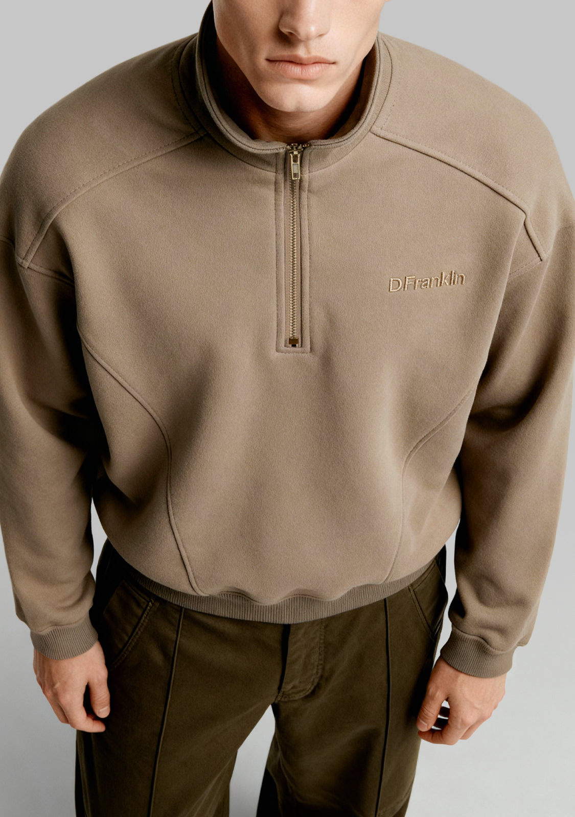 Half-Zip Sweatshirt Sand is a unisex sweatshirt that combines comfort with modern structure. The half-zip collar adds flexibility to your fit, while the defined seams break the plainness for a more dynamic look.