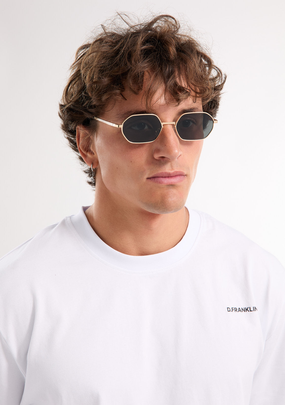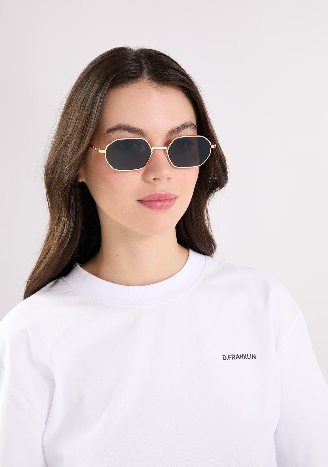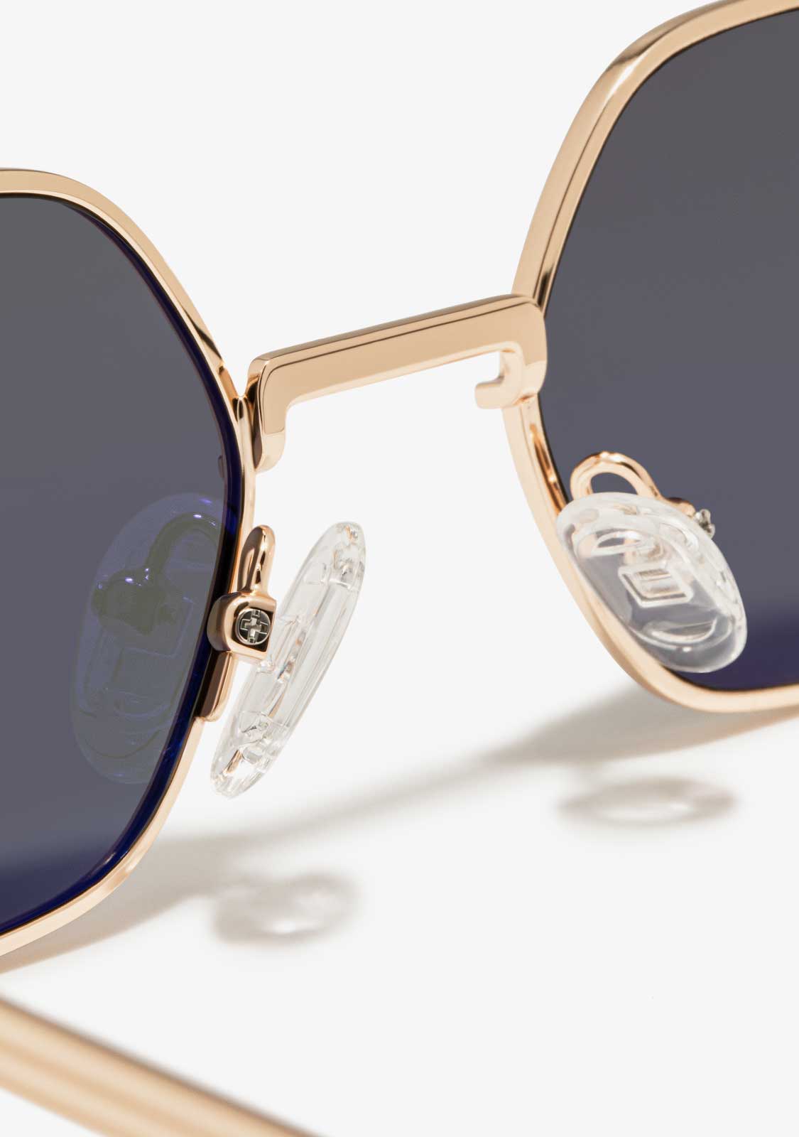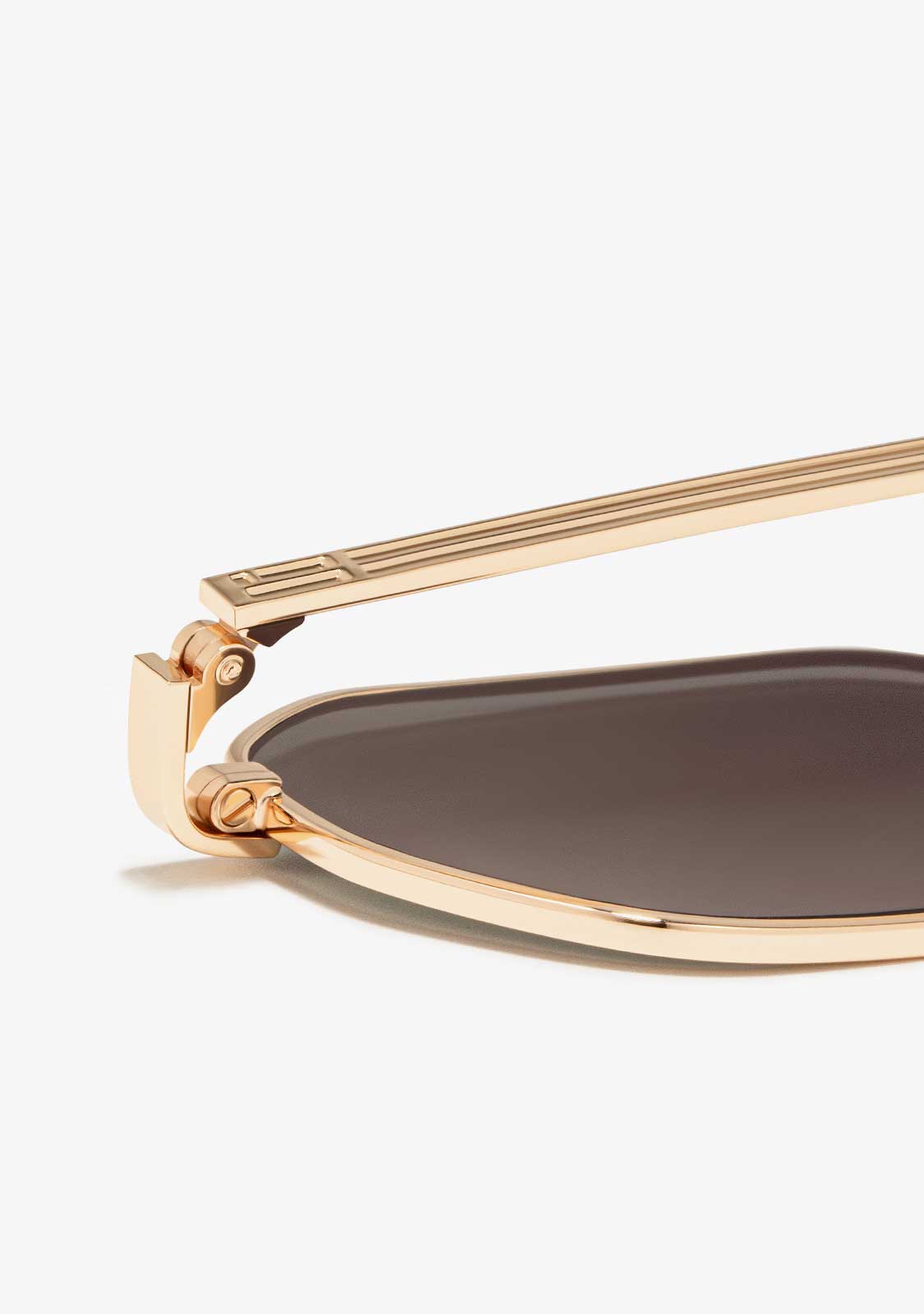The Square Legacy design features a metallic finish with a hexagonal aesthetic. Its gold-tone frame is paired with smoke anti-reflective lenses that allow a subtle view through and define the facial features. The front measures 141 mm, and the lens width is 54 mm. The temples are 140 mm long and incorporate our distinctive detailing. A retro yet minimalist piece to frame any outfit.