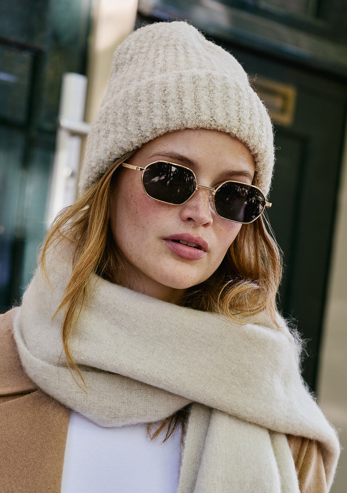 Translucent sunglasses with a geometric design. The legacy of the most iconic pieces from the 70s is combined with a selection of modern details.