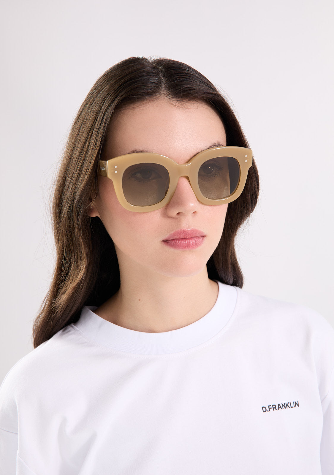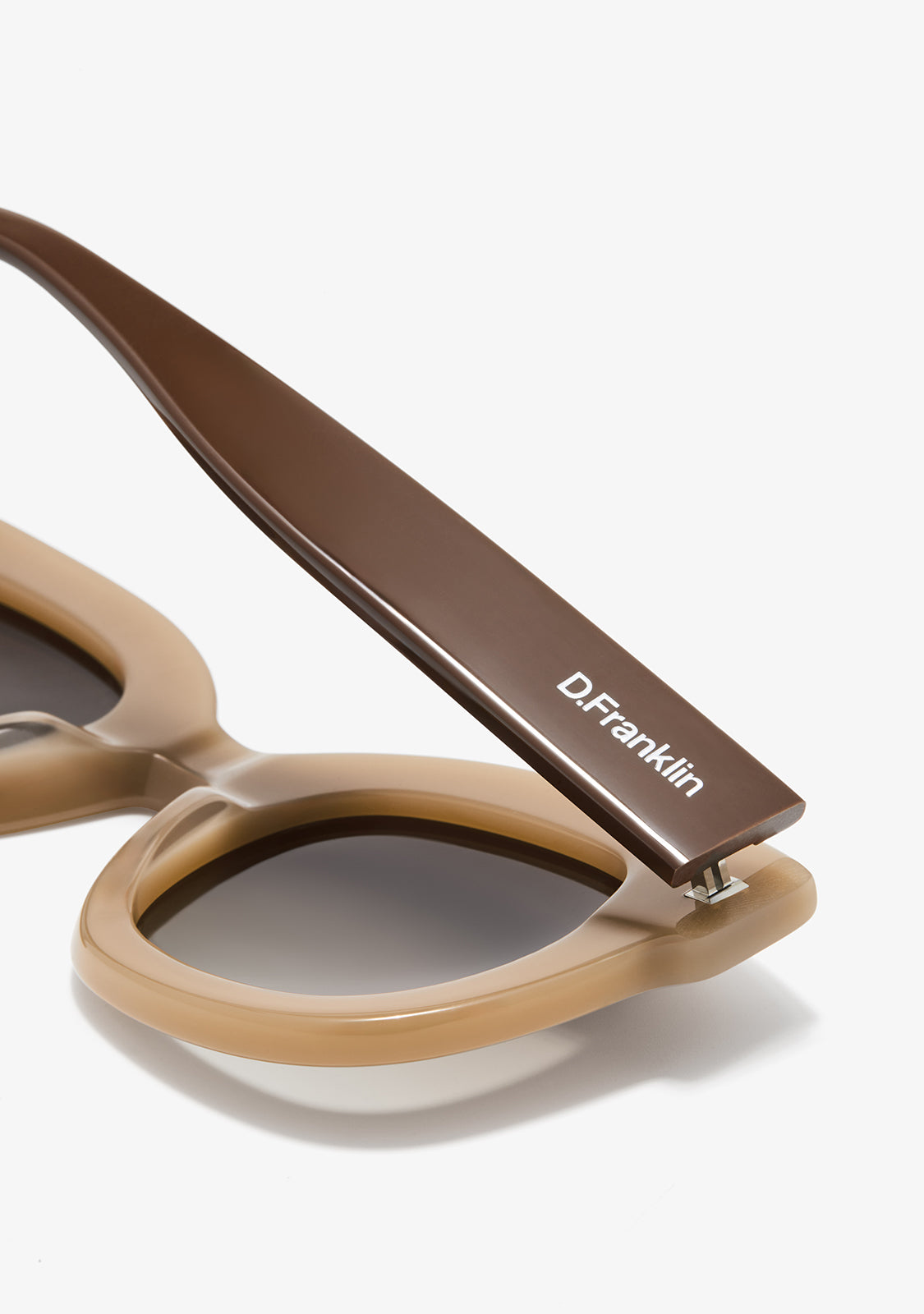 The Holly Sand / Gradient Amber by D.Franklin stand out for their sophisticated design and advanced functionality. With a frame, bridge, and temples made from acetate, these sunglasses provide durability and a premium feel, ensuring all-day comfort.