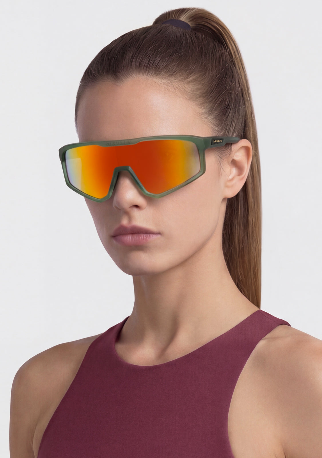 The Hurricane Green / Orange model stands out with its vibrant finish and aerodynamic frame designed for performance. It features a 142 mm front and 155 mm lenses, precisely engineered to optimize airflow and reduce wind resistance. The 140 mm temples display our emblem on both sides, while silicone pads on the tips and nose bridge ensure a secure and comfortable fit.