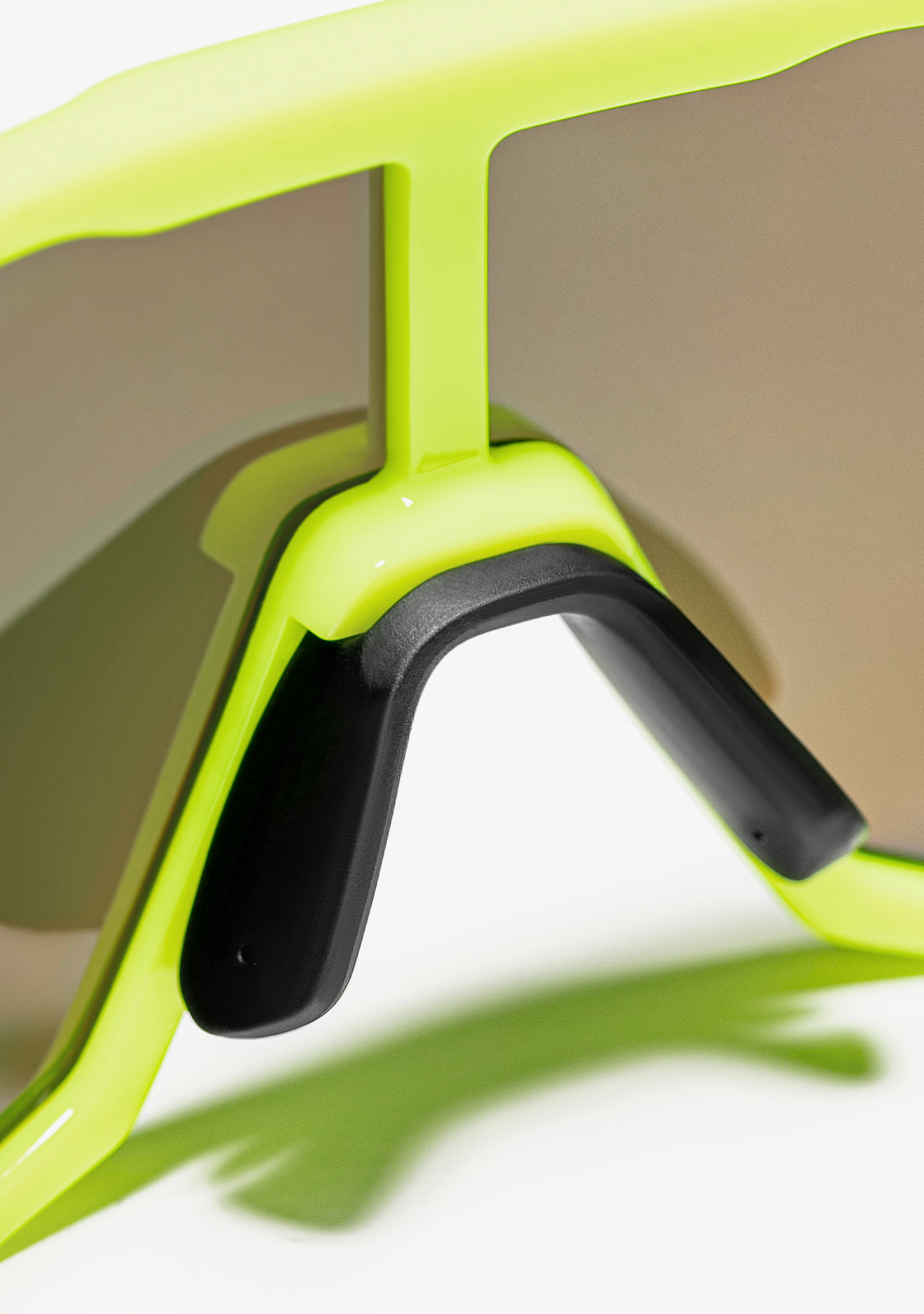 The Hurricane Lime / Red have been designed to improve air movement and offer optimal ventilation. These glasses have silicone pads on the nose bridge and temples, which ensure unprecedented adherence, increasing support despite sweat.