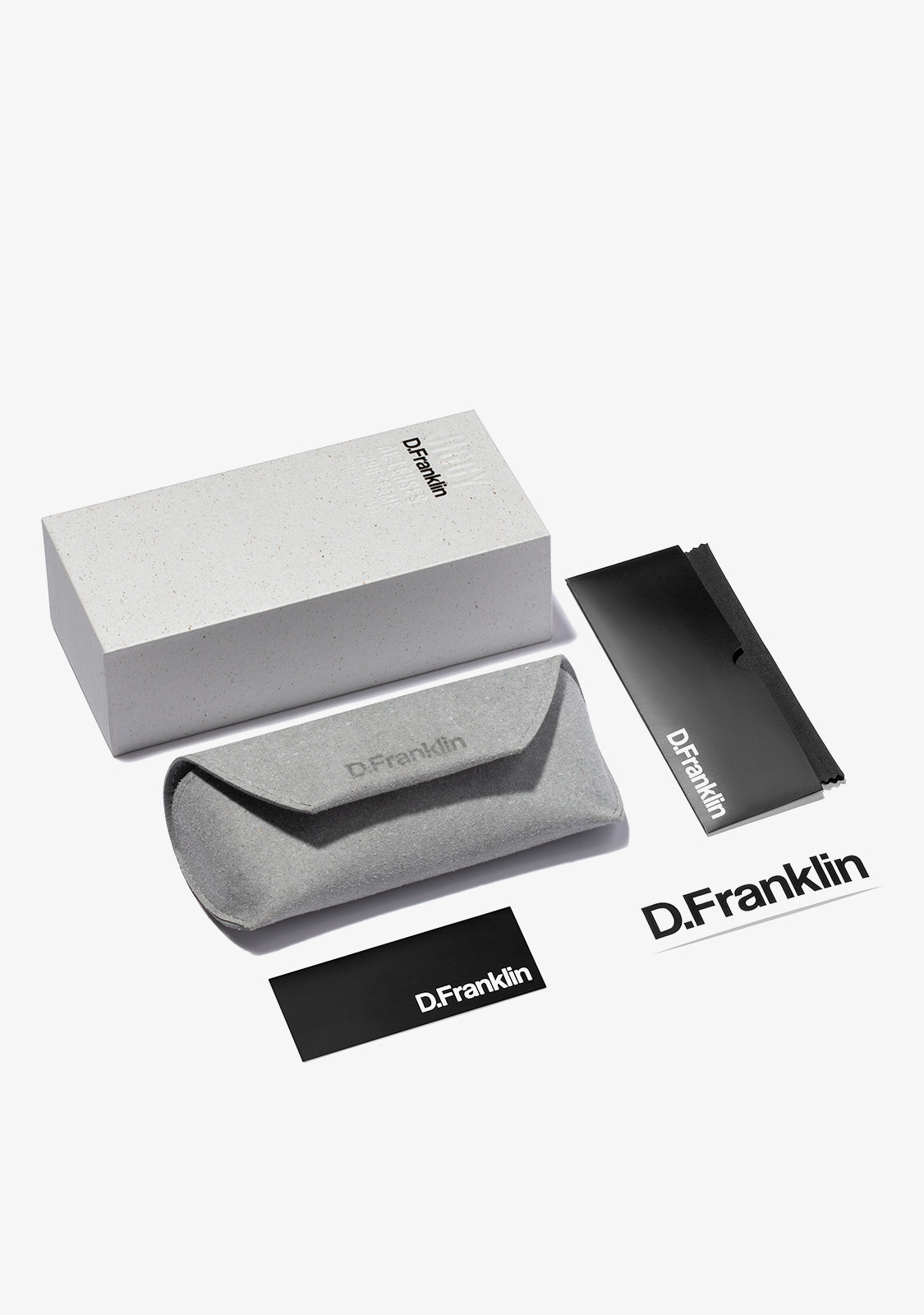 Check out our Jiggy model in black. This retro-inspired silhouette features signature D.Franklin details: the logo engraved on the temples and emblem on the lens. The lens width is 47 mm and the front is 143 mm. The side temples have a length of 145 mm.