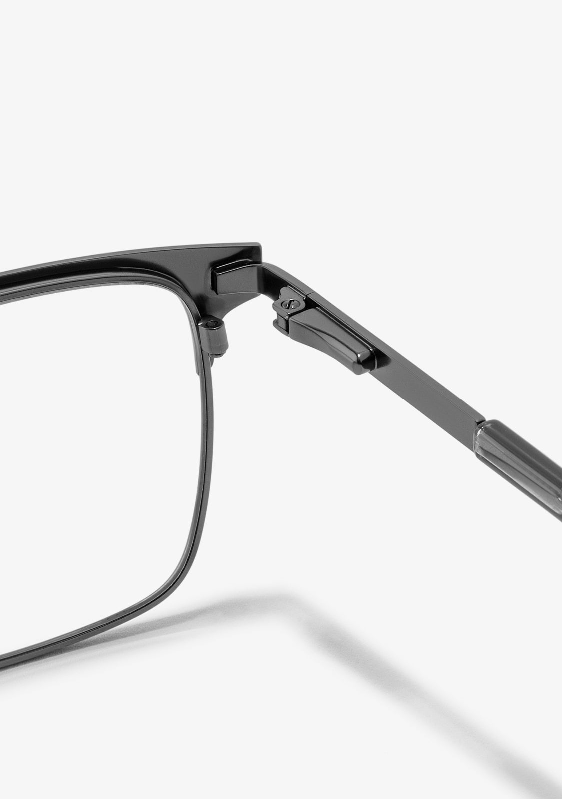 A collection with a sophisticated look. Discover the Laurent collection, with square designs in different shades, inspired by the most popular classics of the 70s.The Laurent Square Blue Block Silver / Black model features: