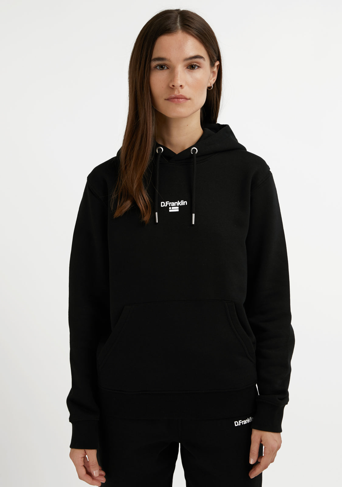 Join the D.Franklin style with their latest collection of sweatshirts. Characterised by their simplicity, they are the perfect combination of the most basic colours and the application of a central logo. The Mid Logo Hoodie Black / White is made from the best materials for breathability, stretch and comfort.- Crewneck