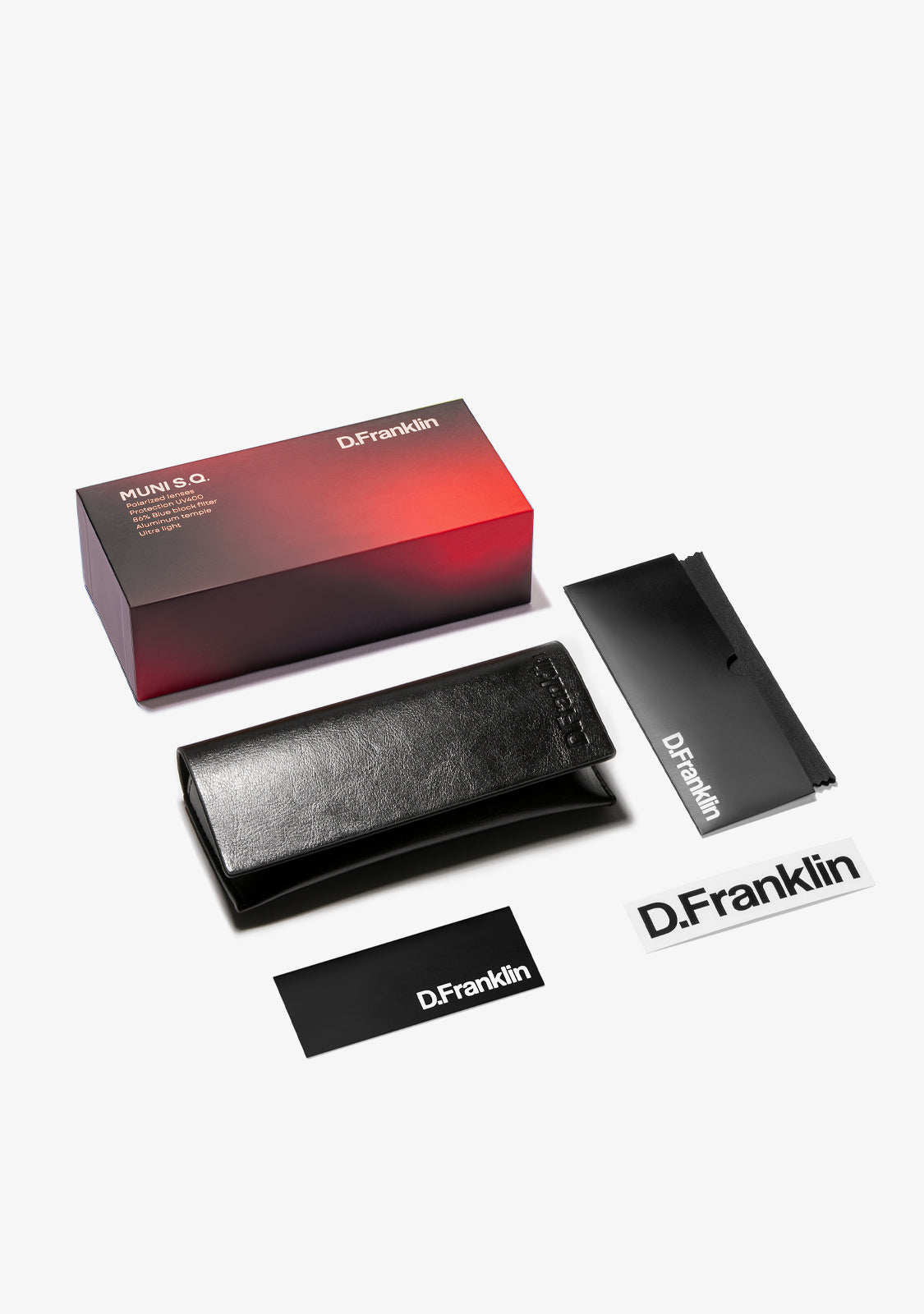 Thanks to their aluminium construction, these glasses are ultra-lightweight. Polarised lenses and a dark frame reinforce the distinctive design. These sunglasses feature our emblem on the right lens and a metallic logo on the side of the temples. It also has a 140 mm front frame and 50 mm lens width, which fits most faces. The temples are 138 mm long.