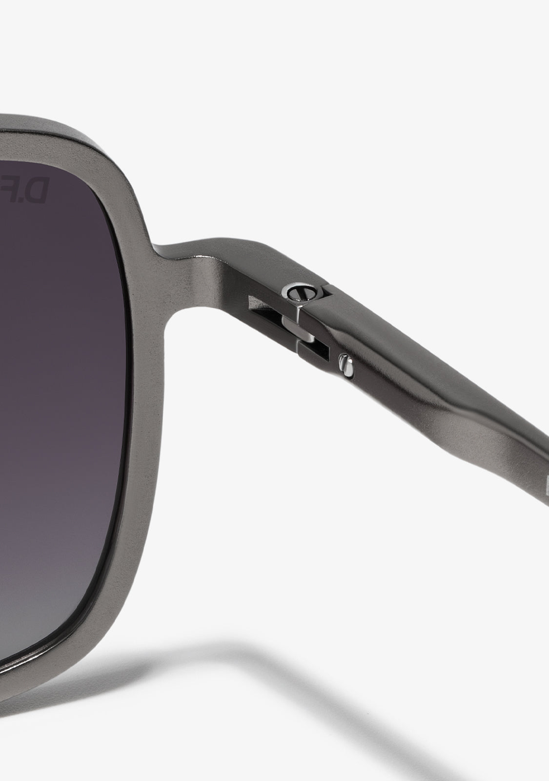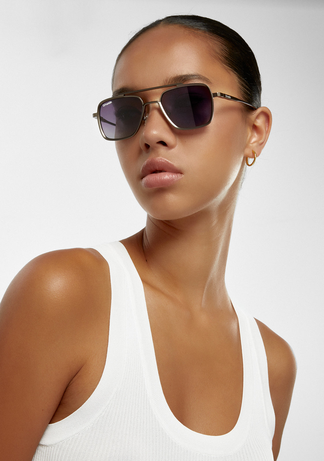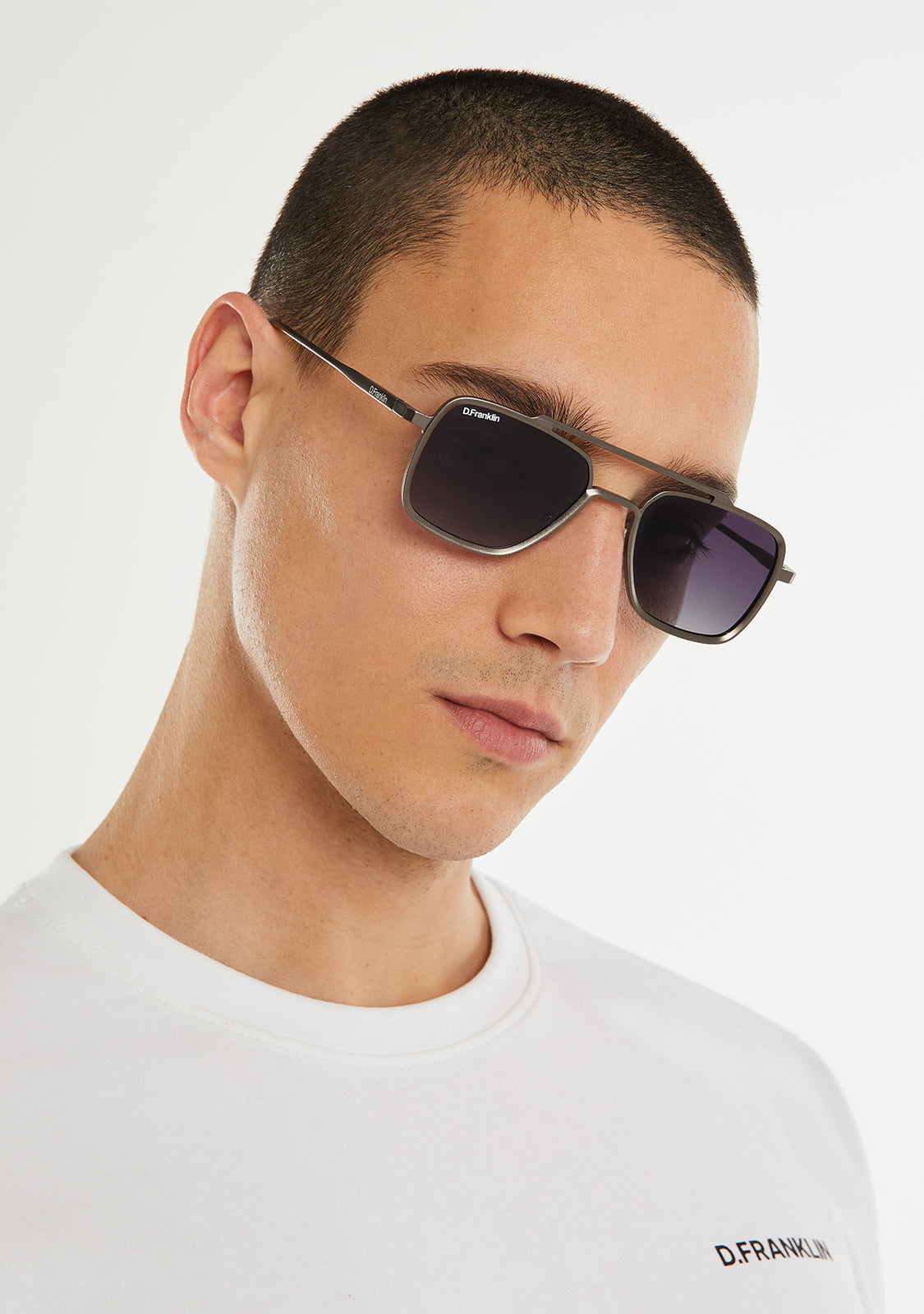 A reinterpretation of an iconic style. We updated the spirit of the unmistakable aviator model with a design that is essentially rectangular. Its silhouette features a frame with straight lines and precise angles that frame the eye in a bold way. The unisex design is designed to create a unique and innovative aesthetic.