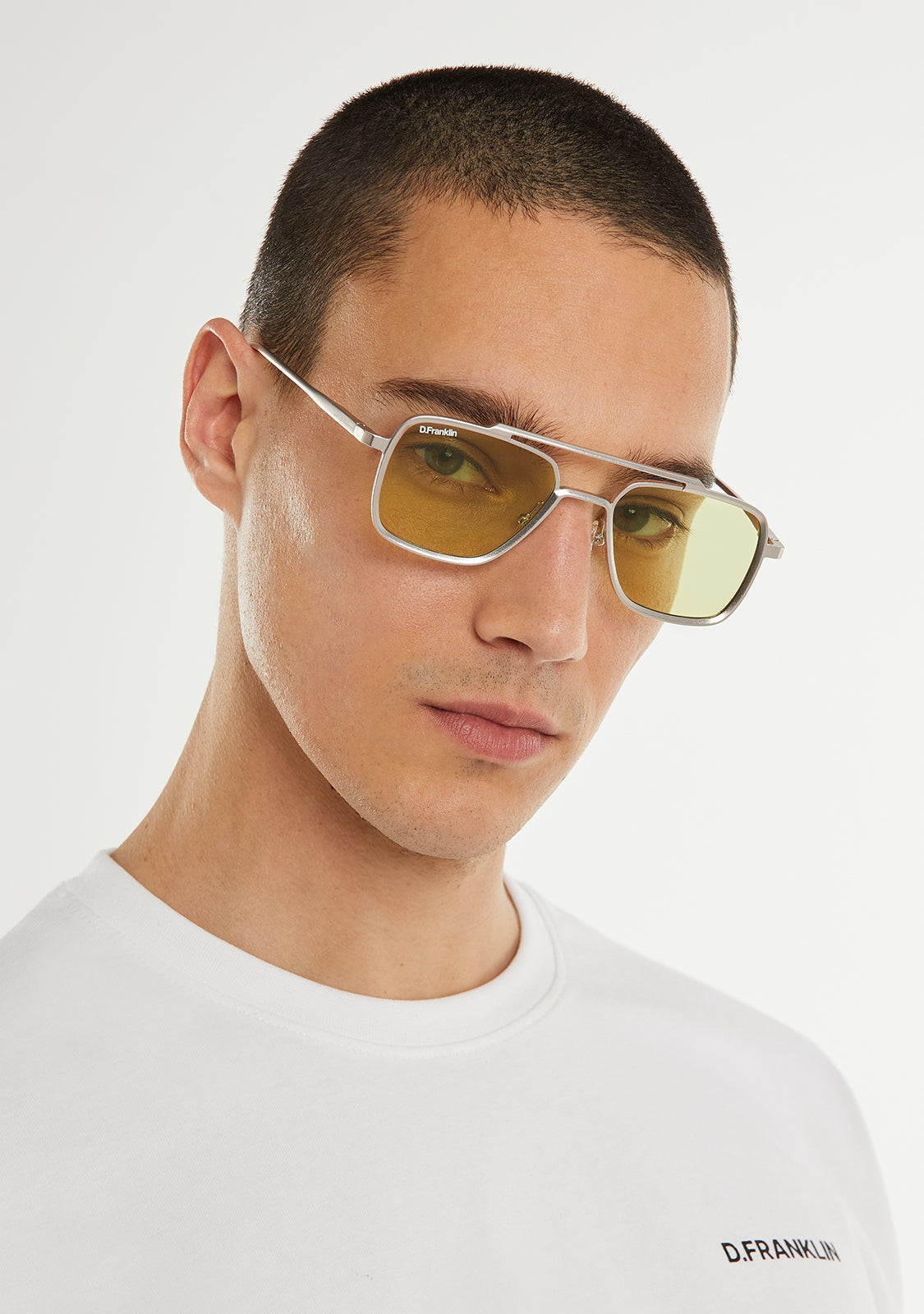 A reinterpretation of an iconic style. We updated the spirit of the unmistakable aviator model with a design that is essentially rectangular. Its silhouette features a frame with straight lines and precise angles that frame the eye in a bold way. The unisex design is designed to create a unique and innovative aesthetic.