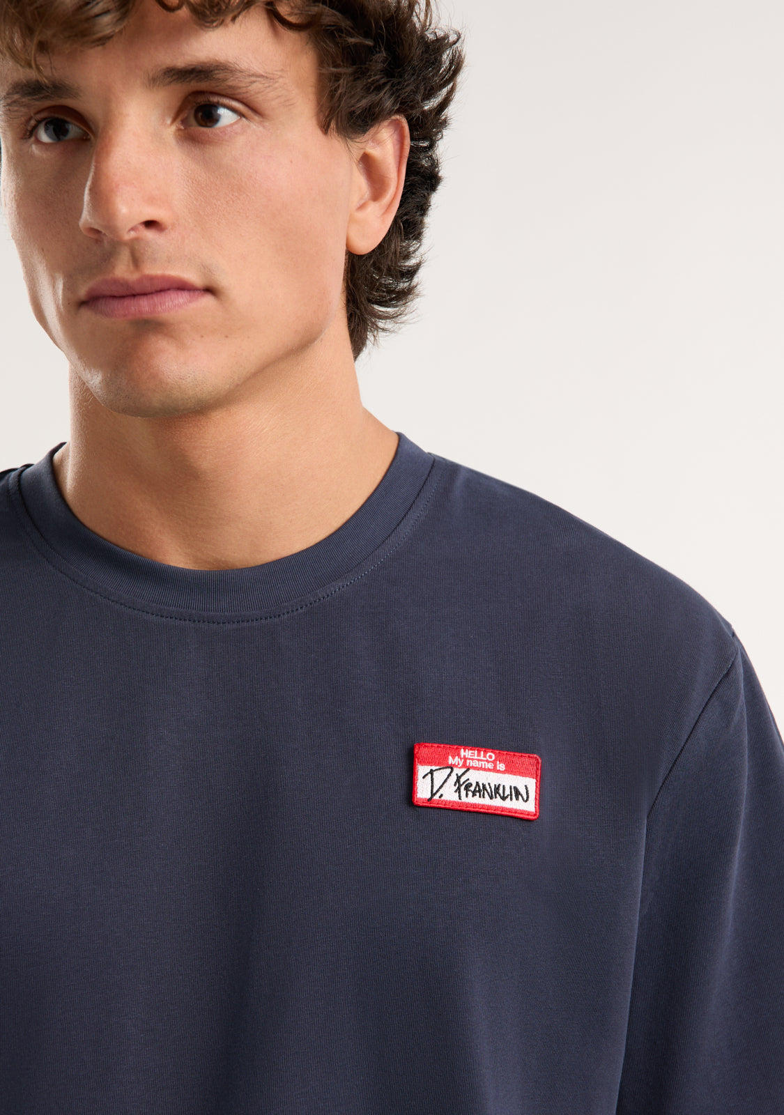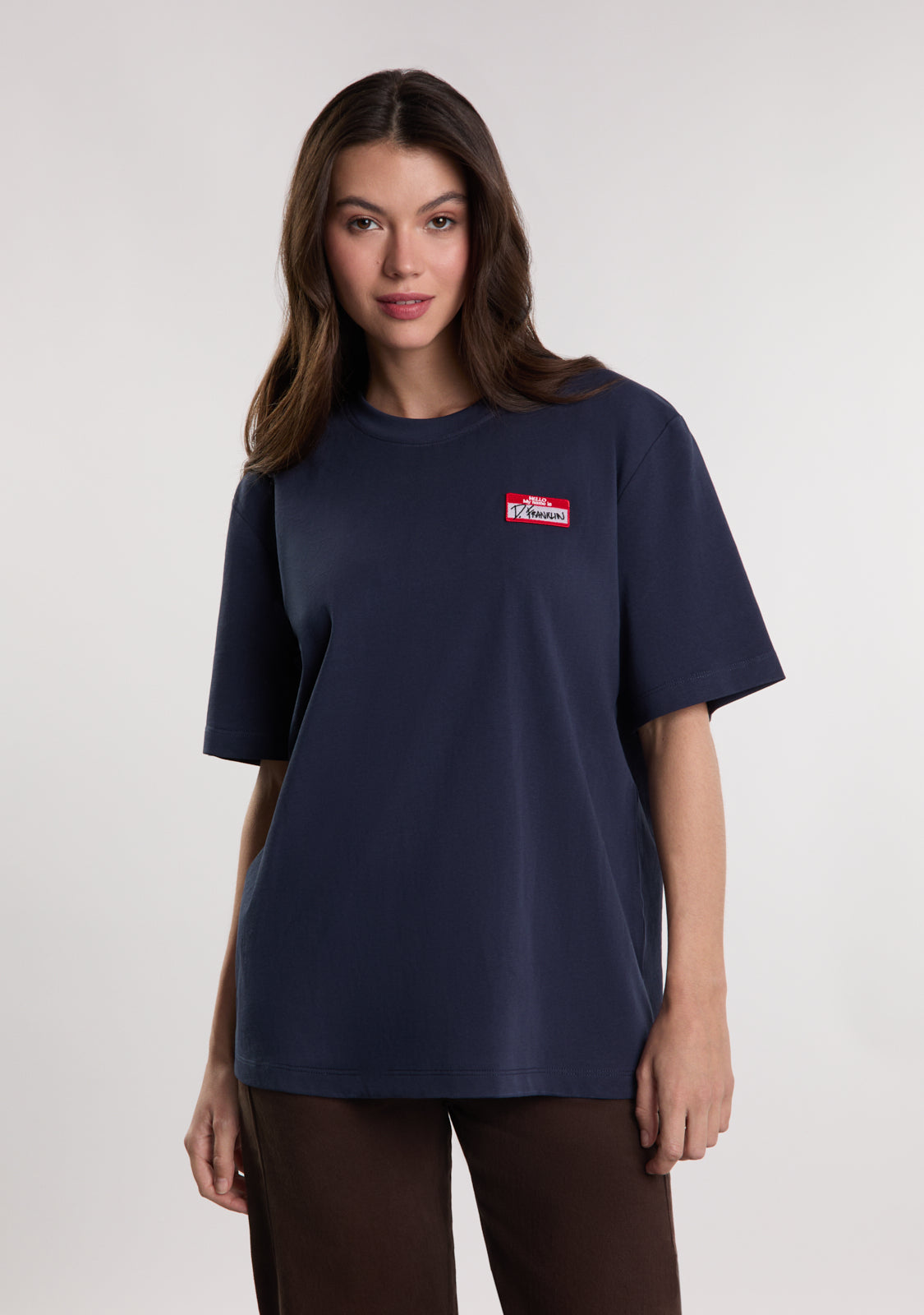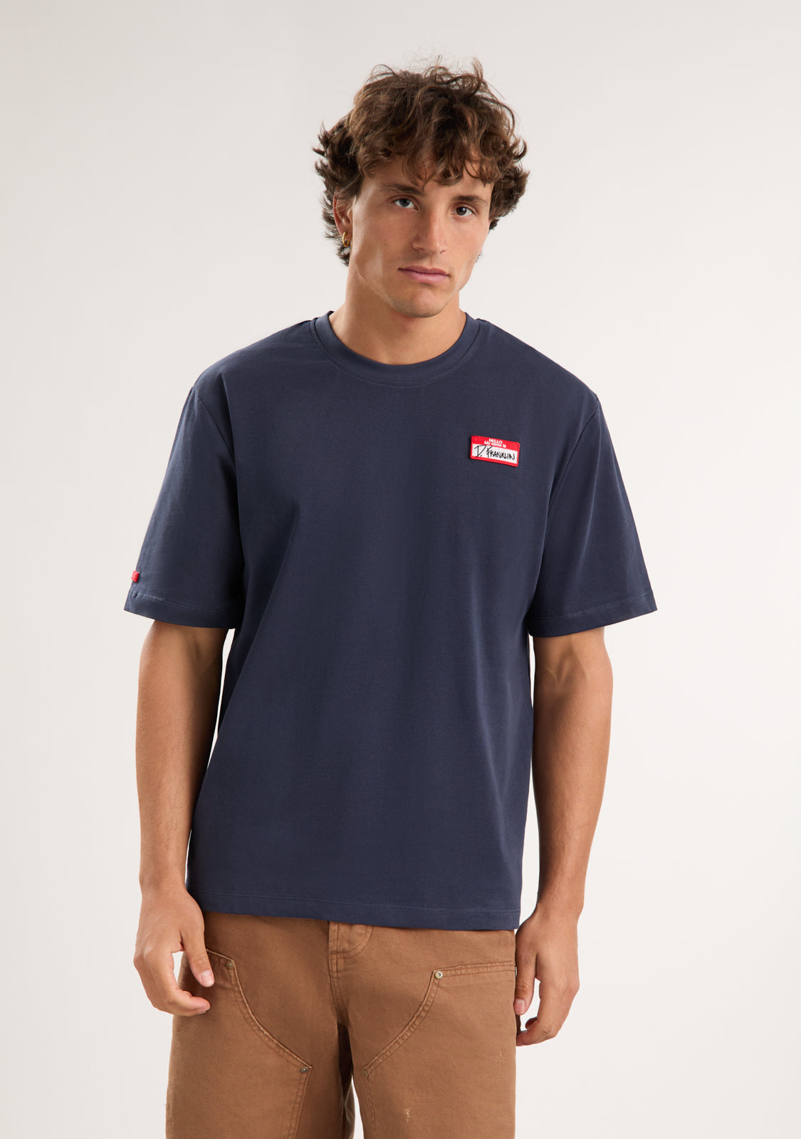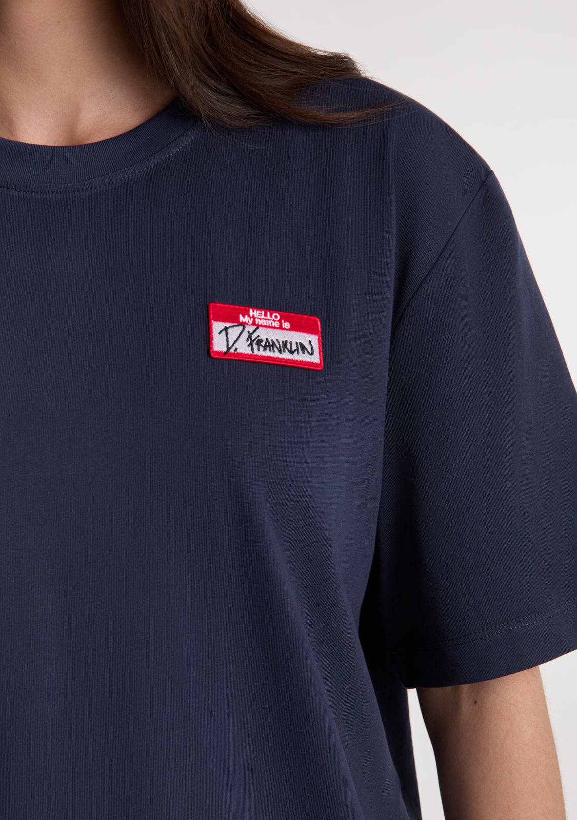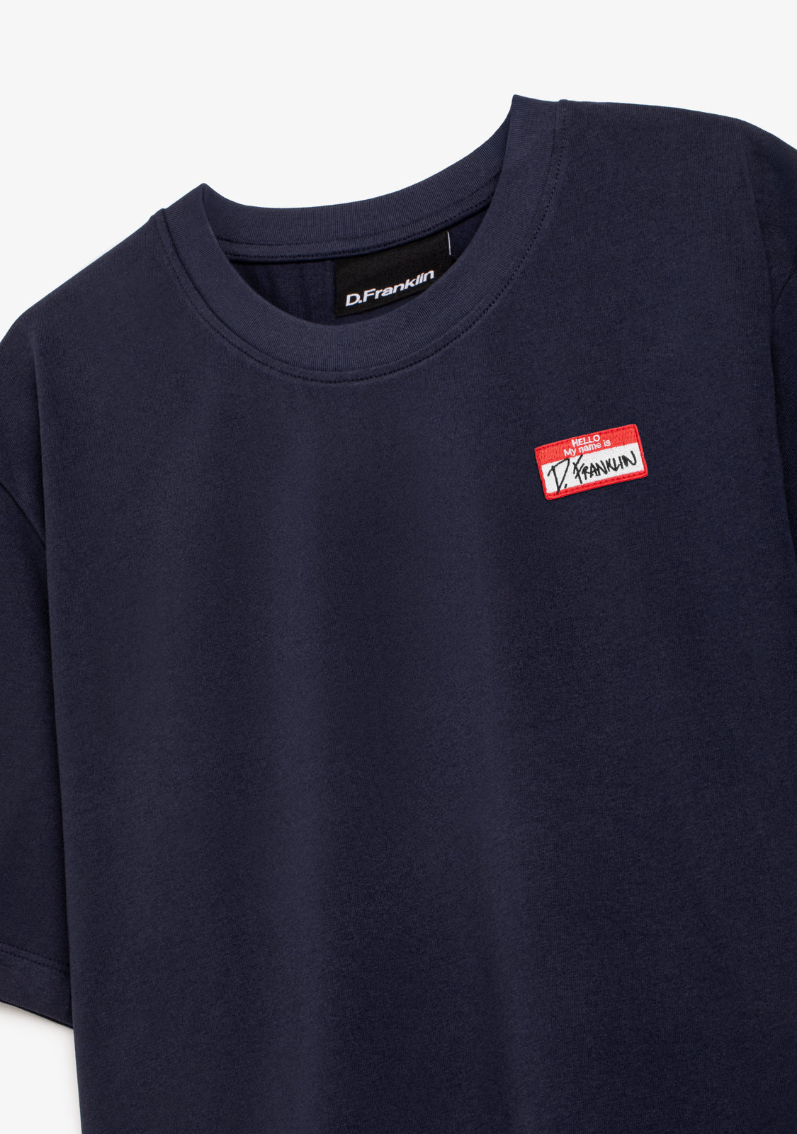 The My Name Is Patch T-Shirt Navy by D.Franklin is the perfect t-shirt for a comfortable and stylish look. Made from 100% high-quality cotton (230 GMS), this piece is soft, durable, and ideal for everyday wear. Its loose fit and round neckline ensure a comfortable fit, allowing freedom of movement at all times.