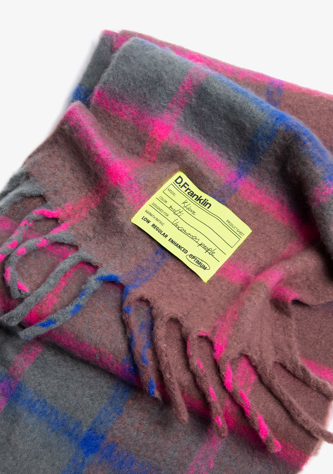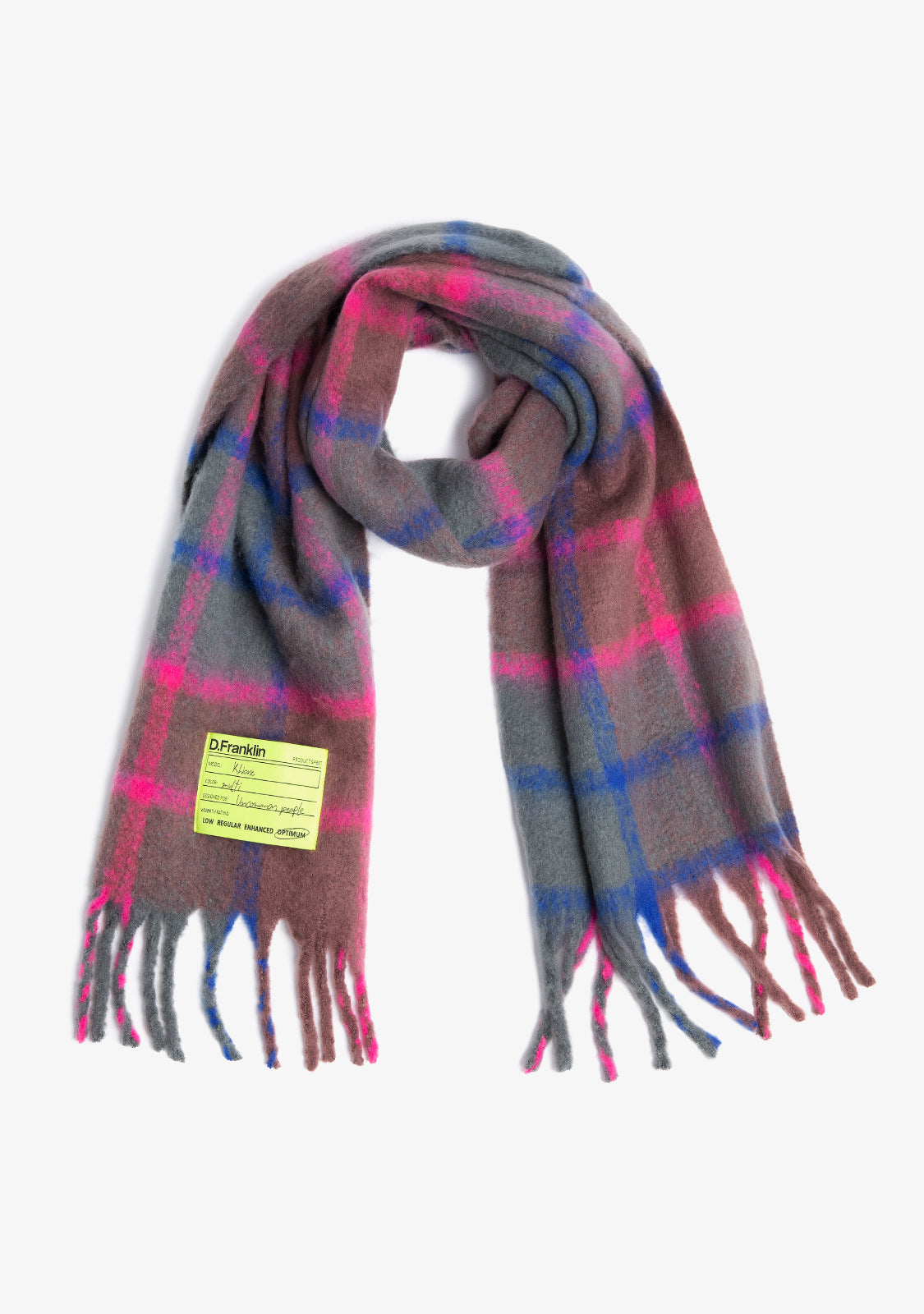 Tartan-inspired scarf. We fused the check pattern trend into a must-have design for the cold season.