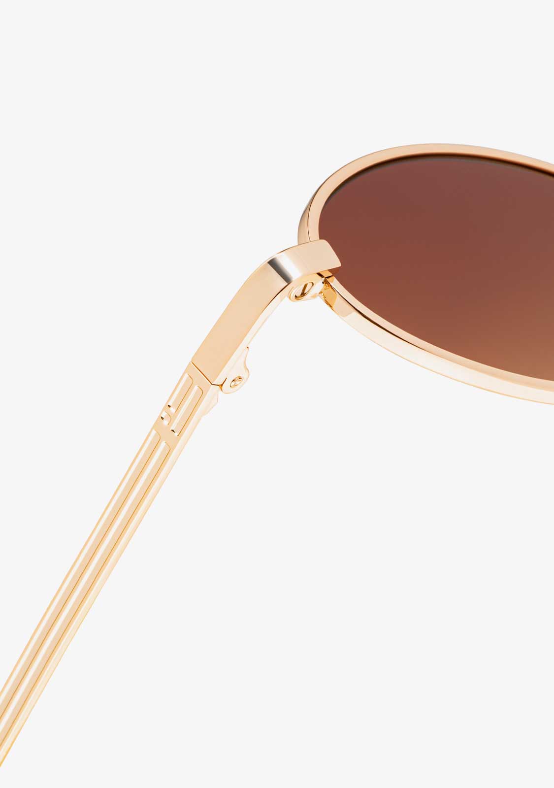The Oval Legacy design features a metallic finish with a circular aesthetic. Its gold-tone frame is paired with gradient brown anti-reflective lenses that allow a subtle view through and define the facial features. The front measures 135 mm, and the lens width is 51 mm. The temples are 140 mm long and incorporate our distinctive detailing. A retro yet minimalist piece to frame any outfit.