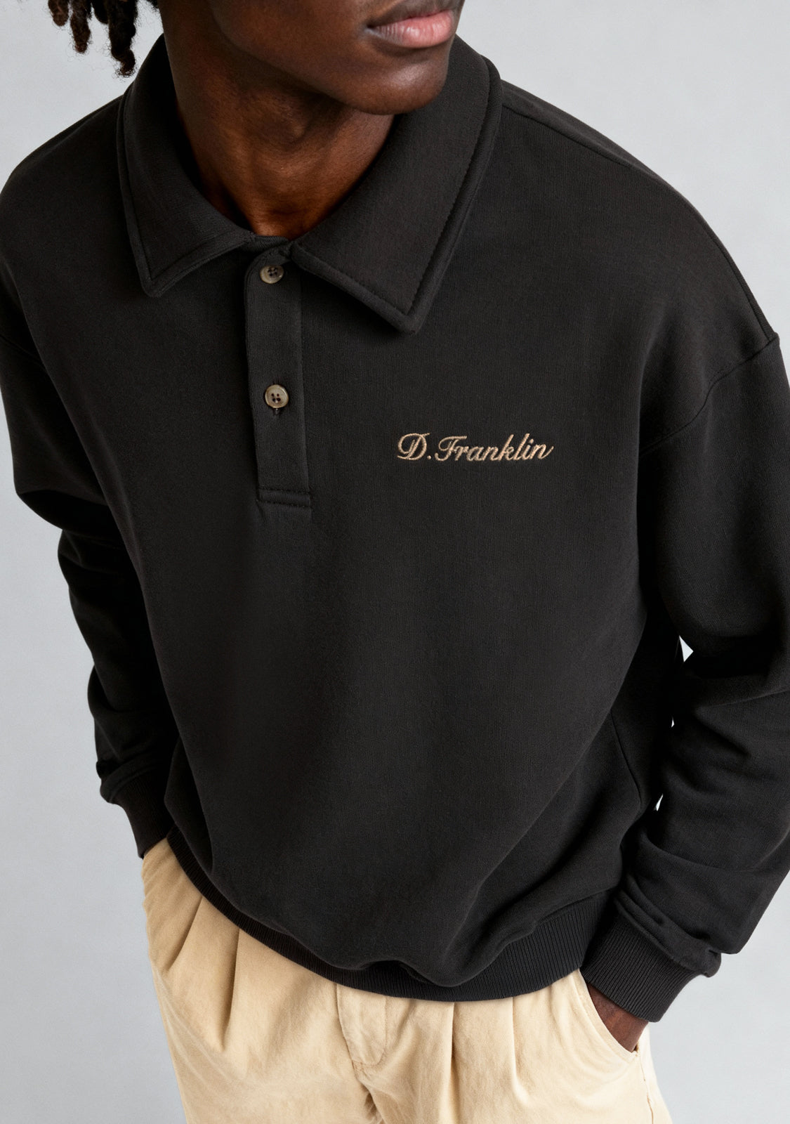 Polo Sweatshirt Anthracite is a unisex sweatshirt with a clean polo design. It’s an easy-to-wear essential that brings warmth to your everyday look.