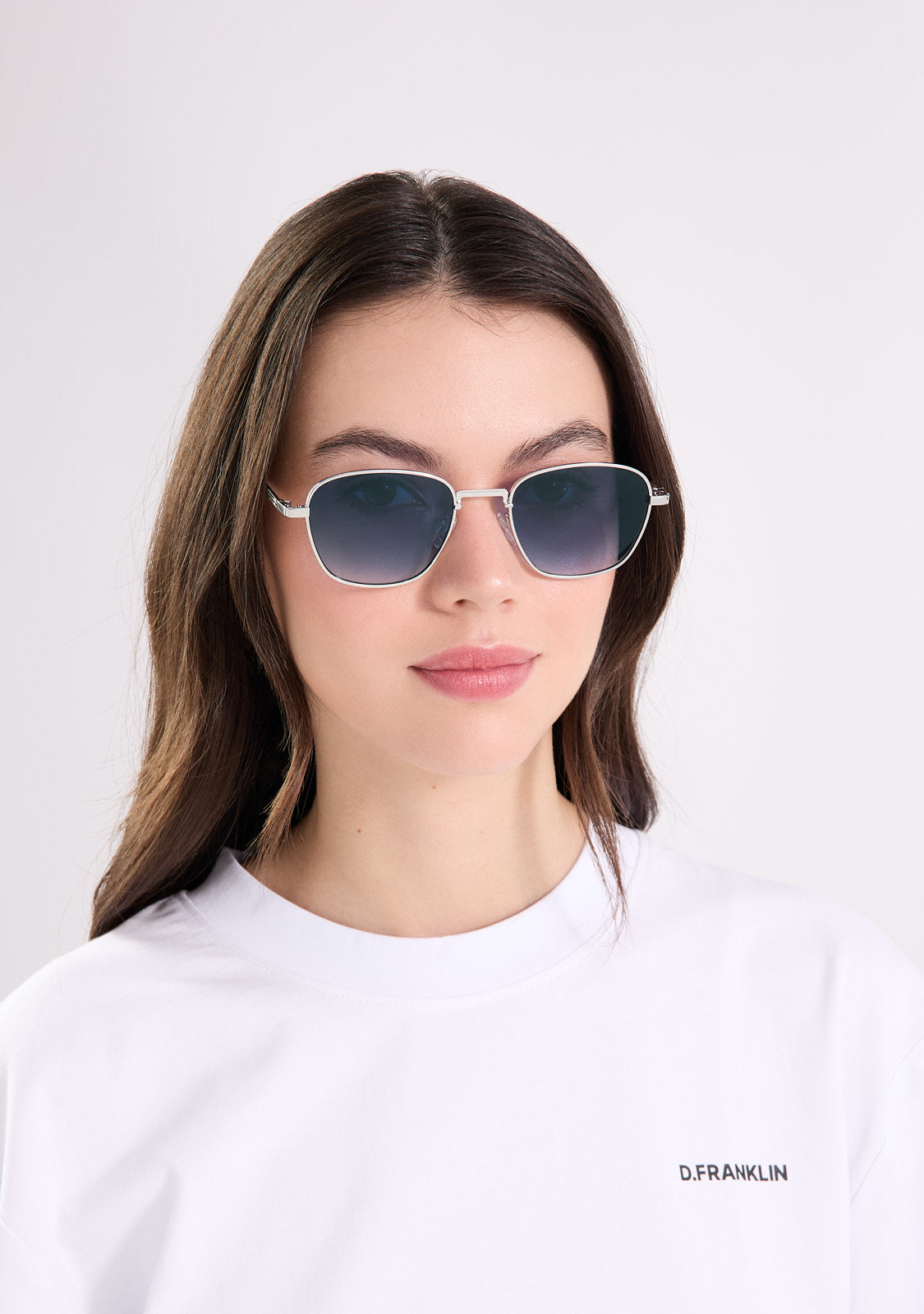 The Quad Legacy Silver / Gradient Blue sunglasses by D.Franklin stand out for their timeless design, crafted with high-quality materials for comfortable and durable daily wear. The metal frame ensures both strength and lightness, while the polycarbonate lenses provide full UV protection.