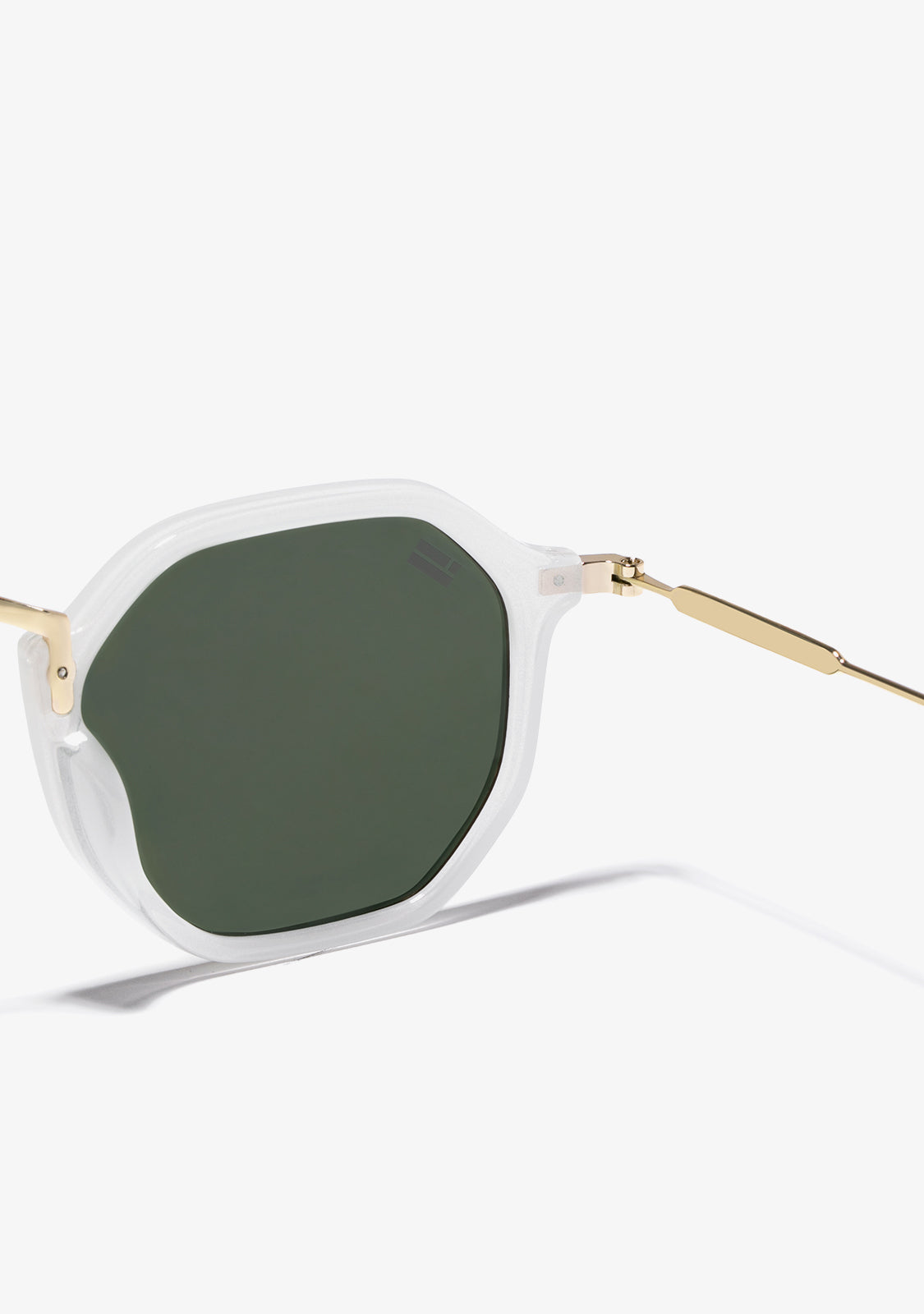 Polycarbonate lenses and a white octagonal outline reinforce the iconic style. It features our signature D.Franklin details: the logo engraved on both metal temples and our emblem on the right lens. With a 51mm lens width and 148mm front frame, these glasses enhance the features of any face. The stainless steel side arms are 145mm long.