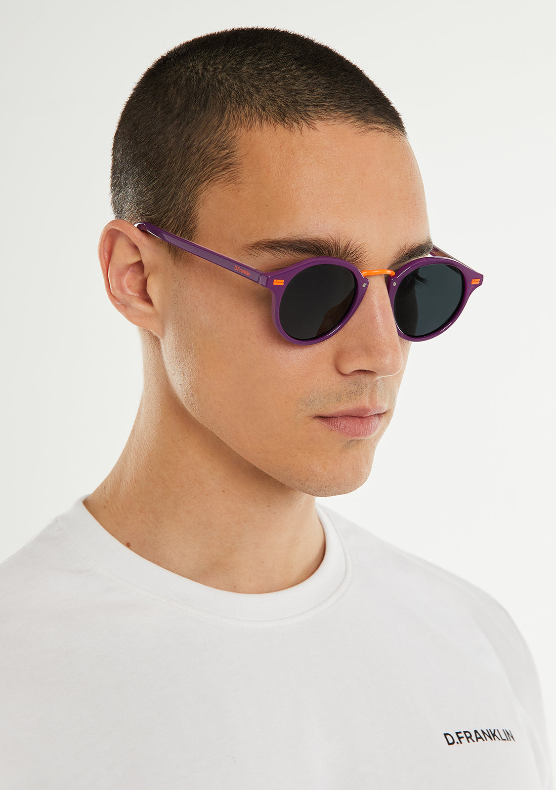 Rediscover our Roller silhouette with a new impeccably finished frame. This model is designed in shades of purple and features our signature D.Franklin details: logo engraved on both temples and our emblem on the right lens. The lens width is 49 mm and the front lens width is 140 mm. The side temples are 145 mm long.