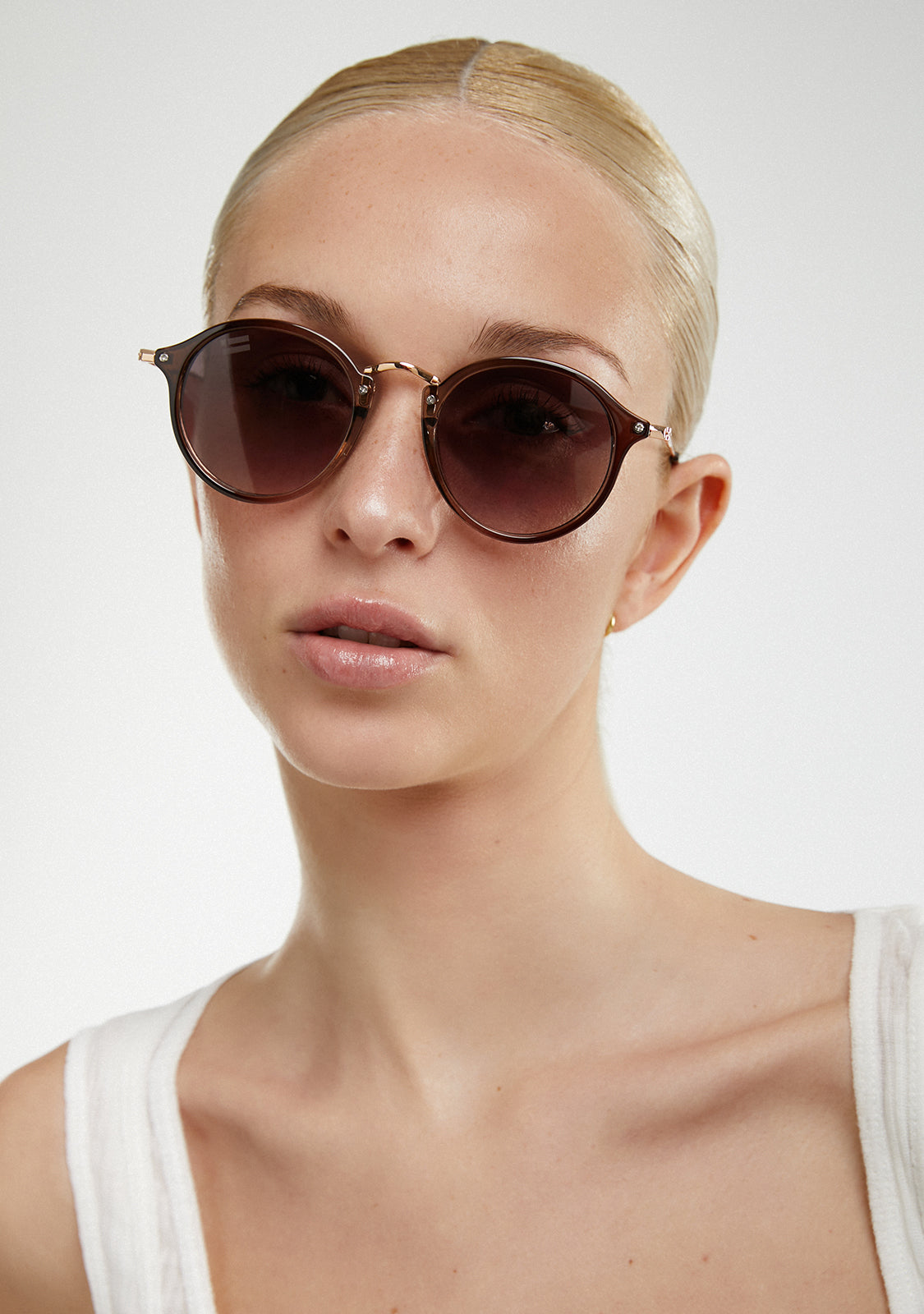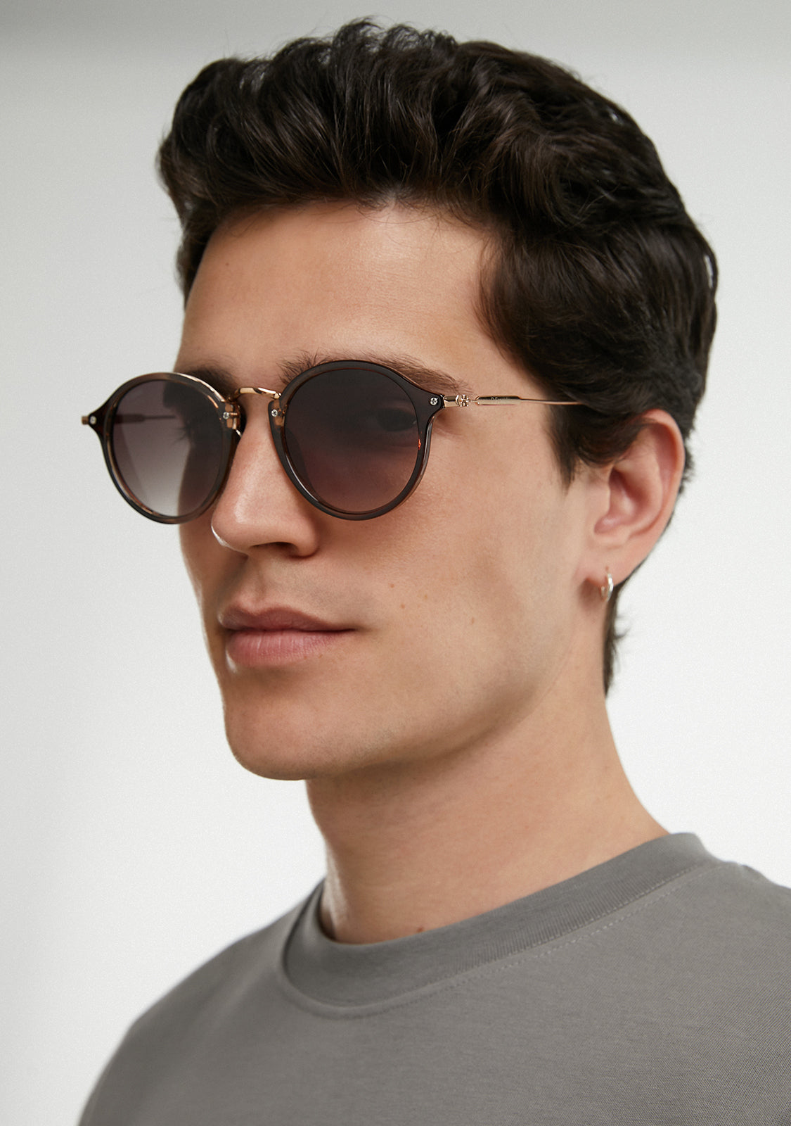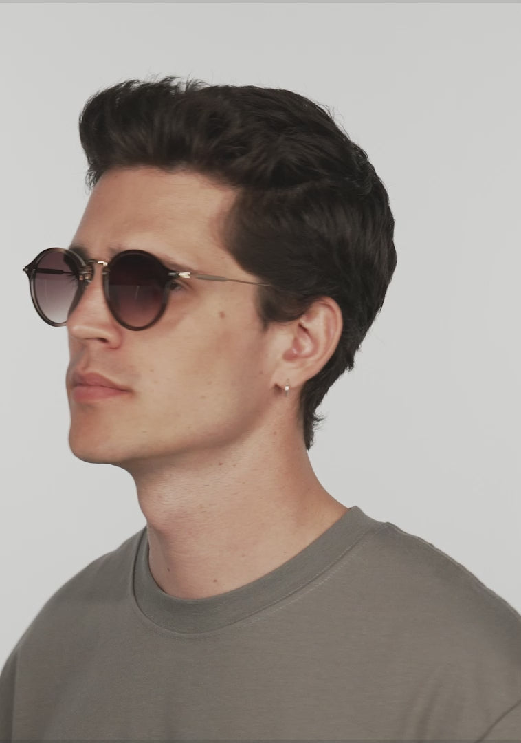 Rounded brown lenses and matching frame tones reinforce the seventies look of this model. It features our signature D.Franklin details: the logo engraved on both metal temples and our emblem on the right lens. With a lens width of 49mm and a 148mm front frame, these glasses suit most faces. The side temples are 145mm long.