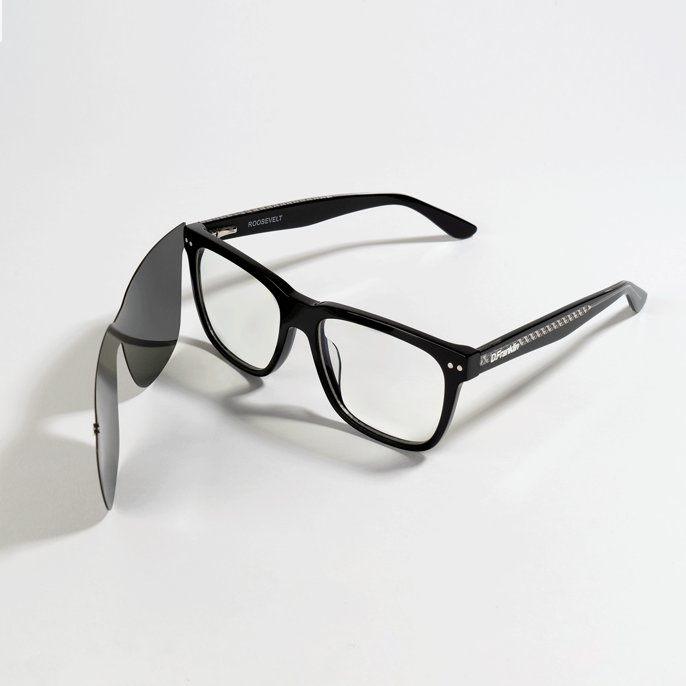 Introducing the new collection of Blue Block + Clip On glasses by D.Franklin, with which you will have two glasses in one: You can change your blue filter lenses to sunglasses lenses by exchanging the front clip.