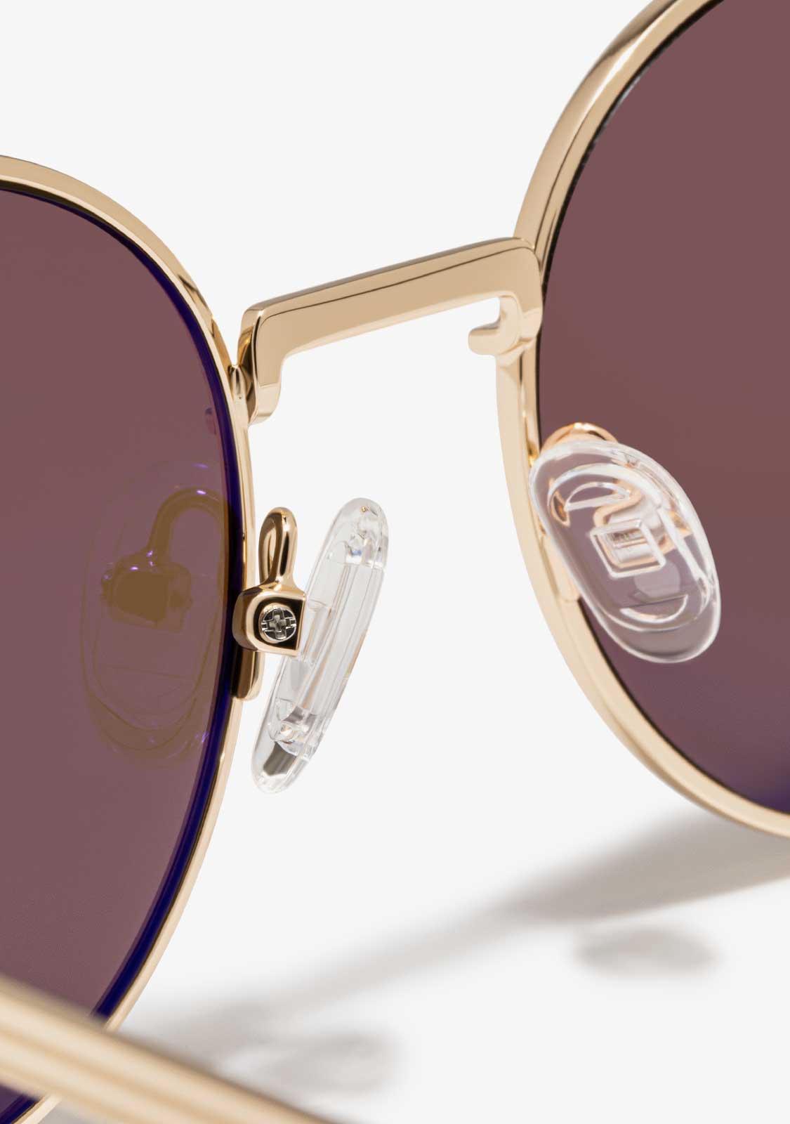 Translucent sunglasses with a round design. The legacy of the most iconic pieces from the 70s is combined with a selection of modern details.