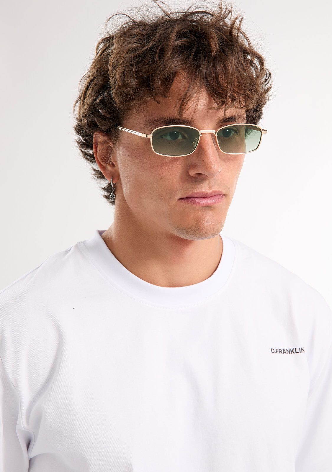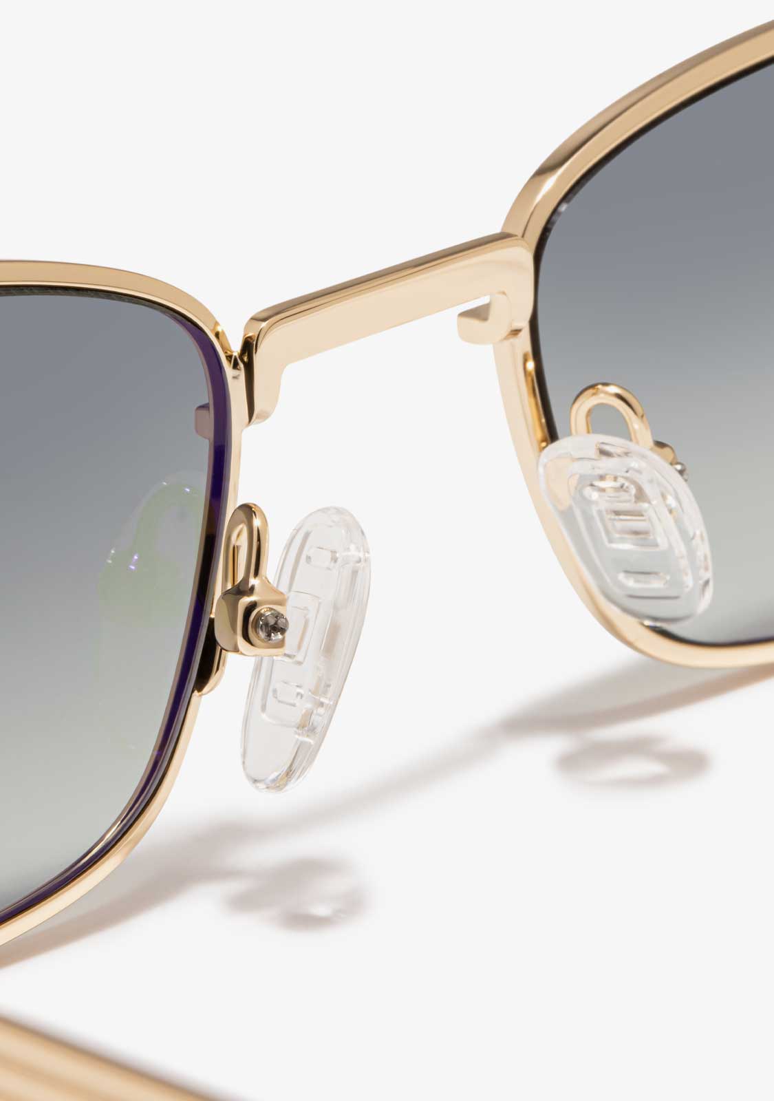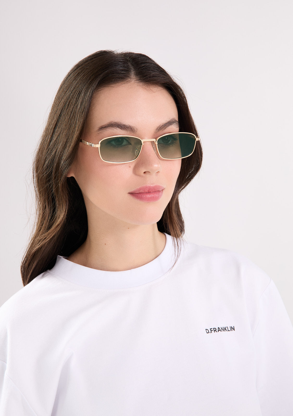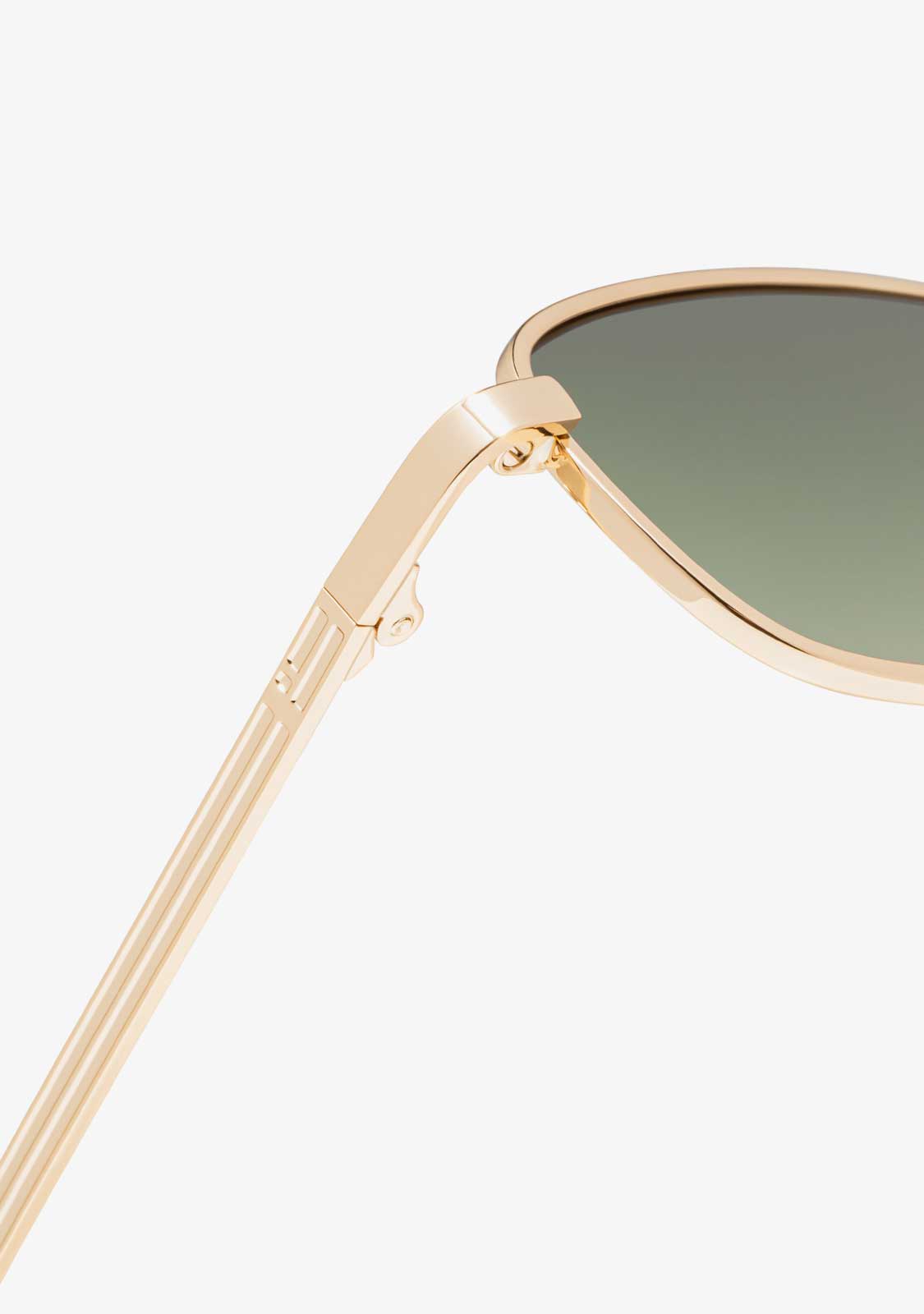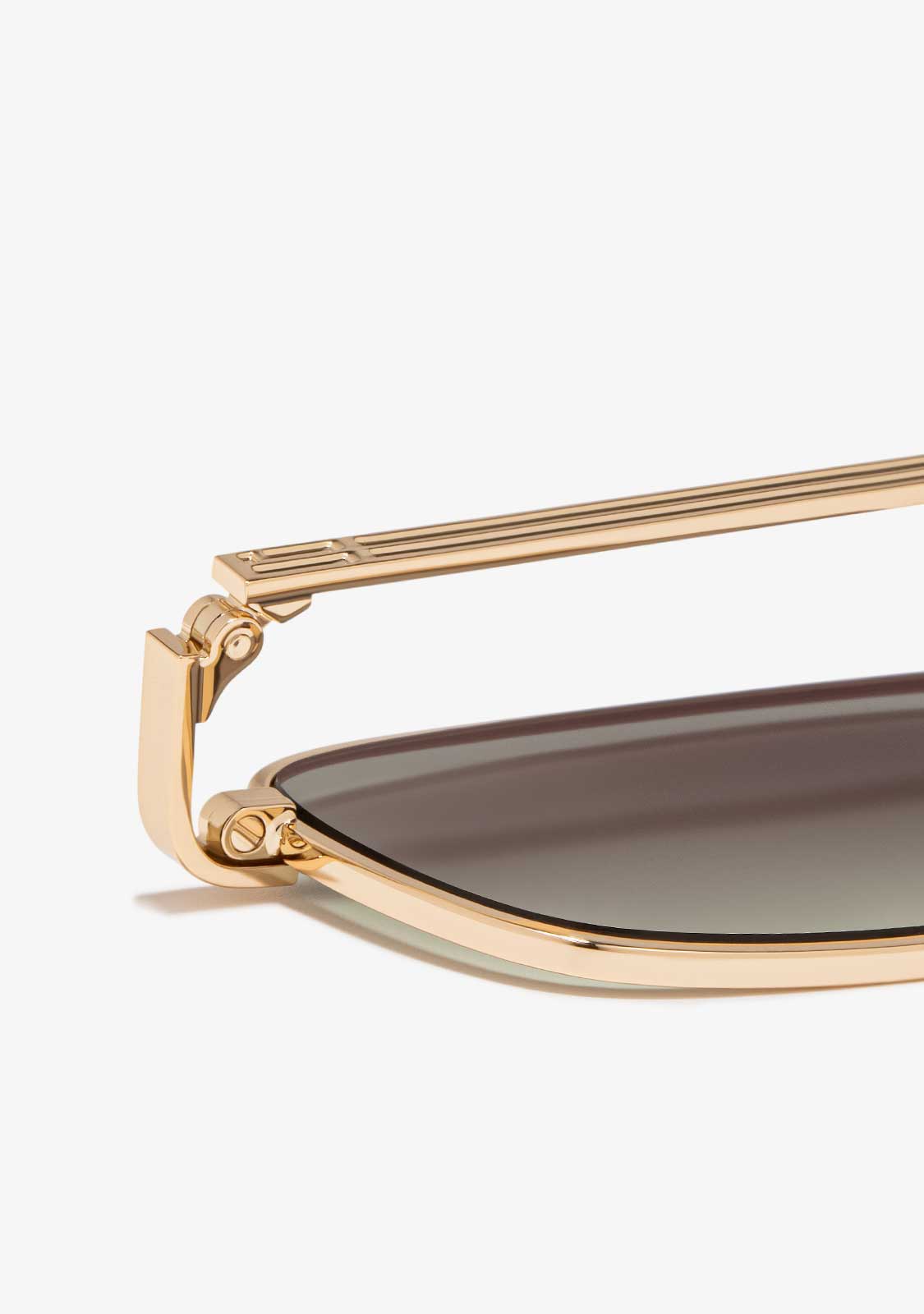 The Square Legacy design features a metallic finish with a rectangular aesthetic. Its gold-tone frame is paired with gradient green anti-reflective lenses that allow a subtle view through and define the facial features. The front measures 142 mm, and the lens width is 56 mm. The temples are 140 mm long and incorporate our distinctive detailing. A retro yet minimalist piece to frame any outfit.