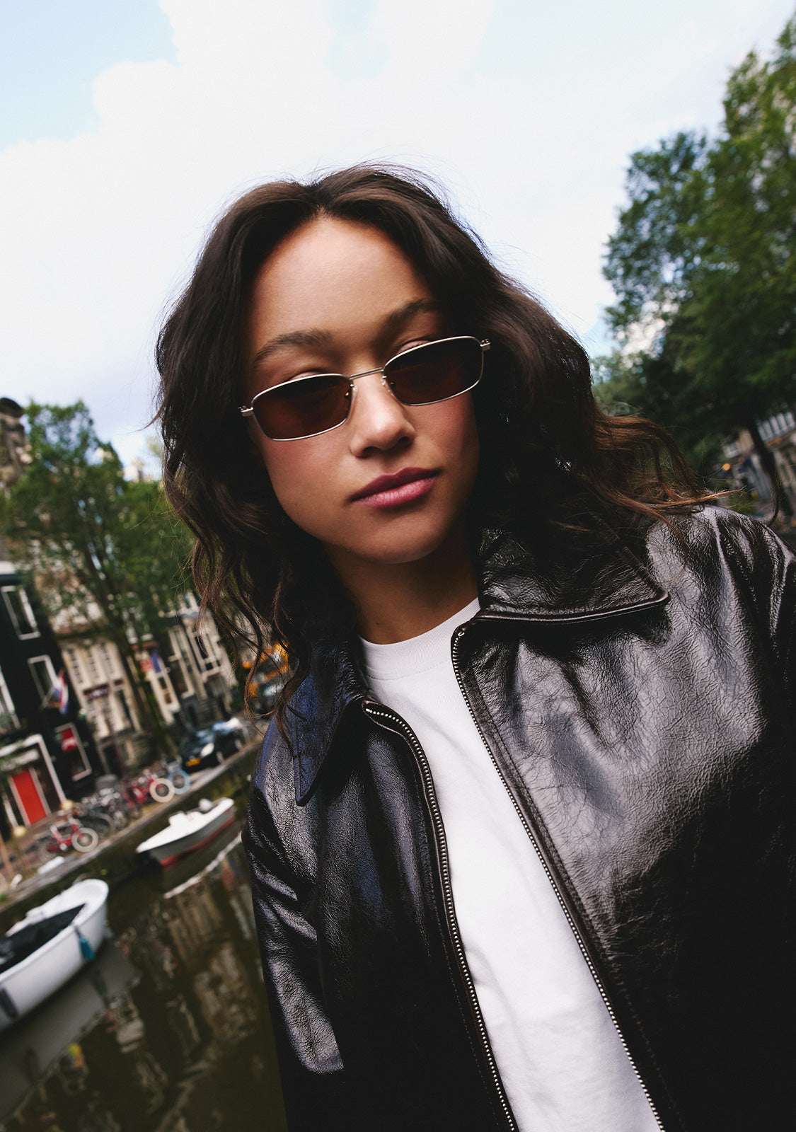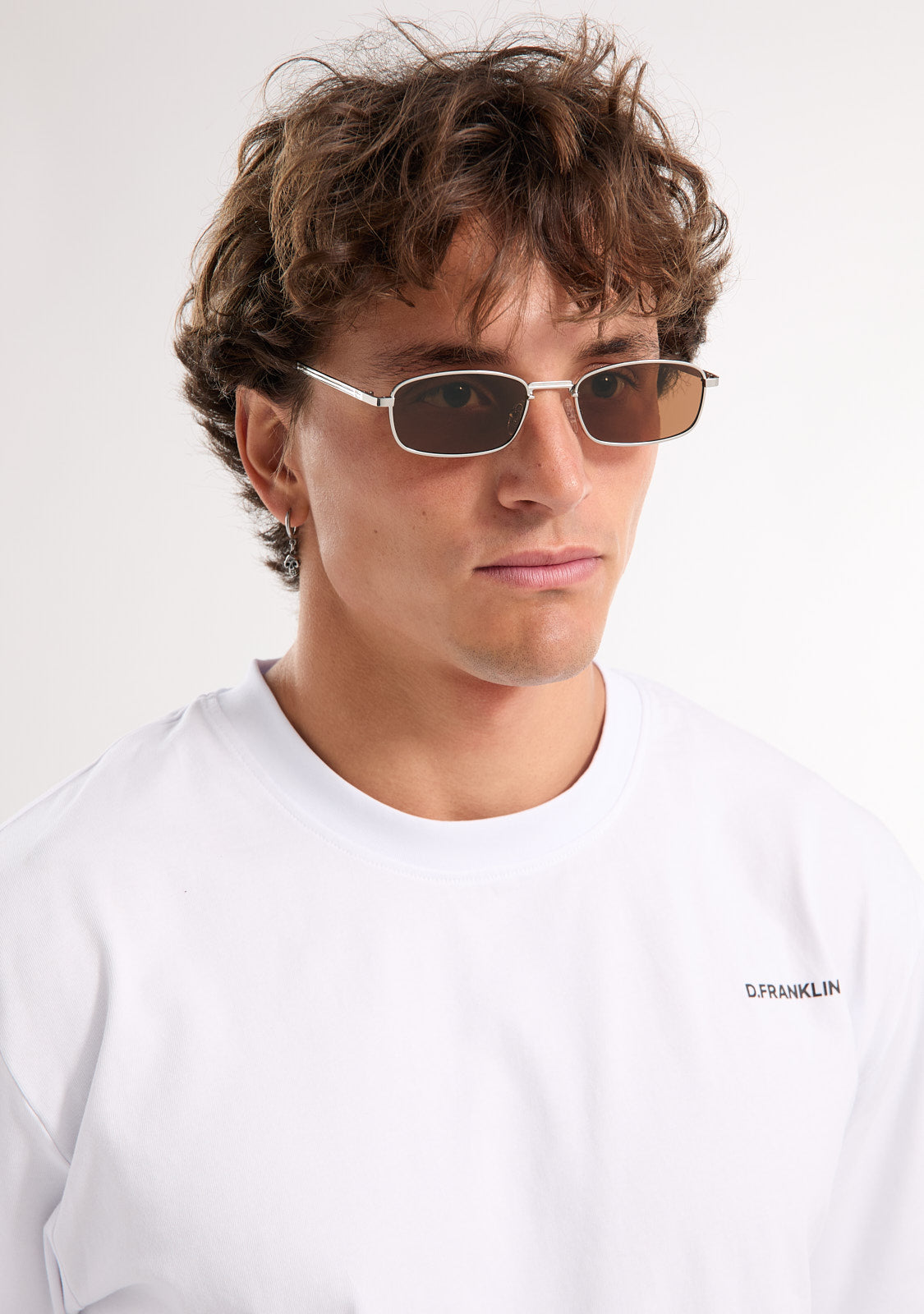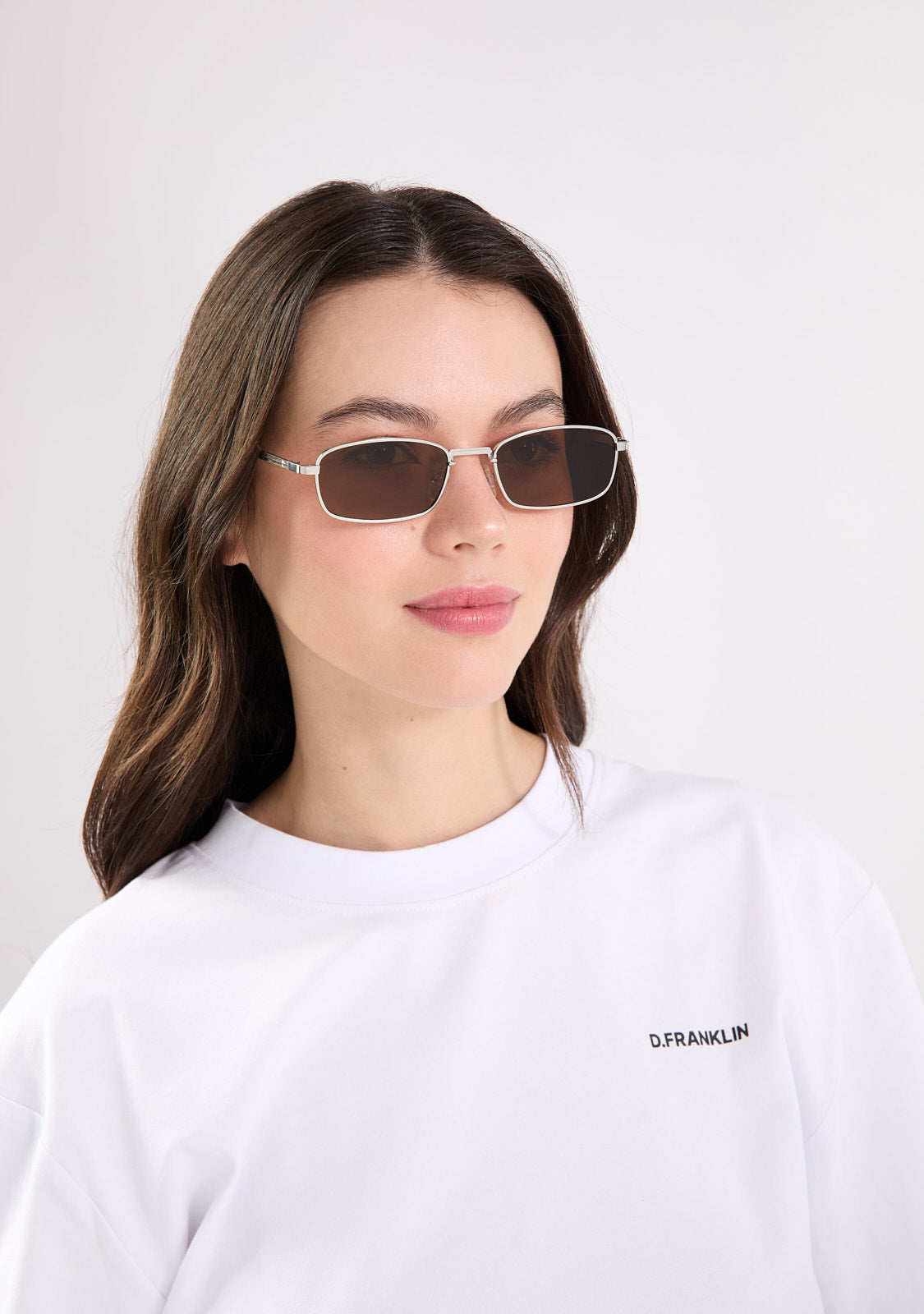 The Square Legacy design features a metallic finish with a rectangular aesthetic. Its silver-tone frame is paired with brown anti-reflective lenses that allow a subtle view through and define the facial features. The front measures 142 mm, and the lens width is 56 mm. The temples are 140 mm long and incorporate our distinctive detailing. A retro yet minimalist piece to frame any outfit.