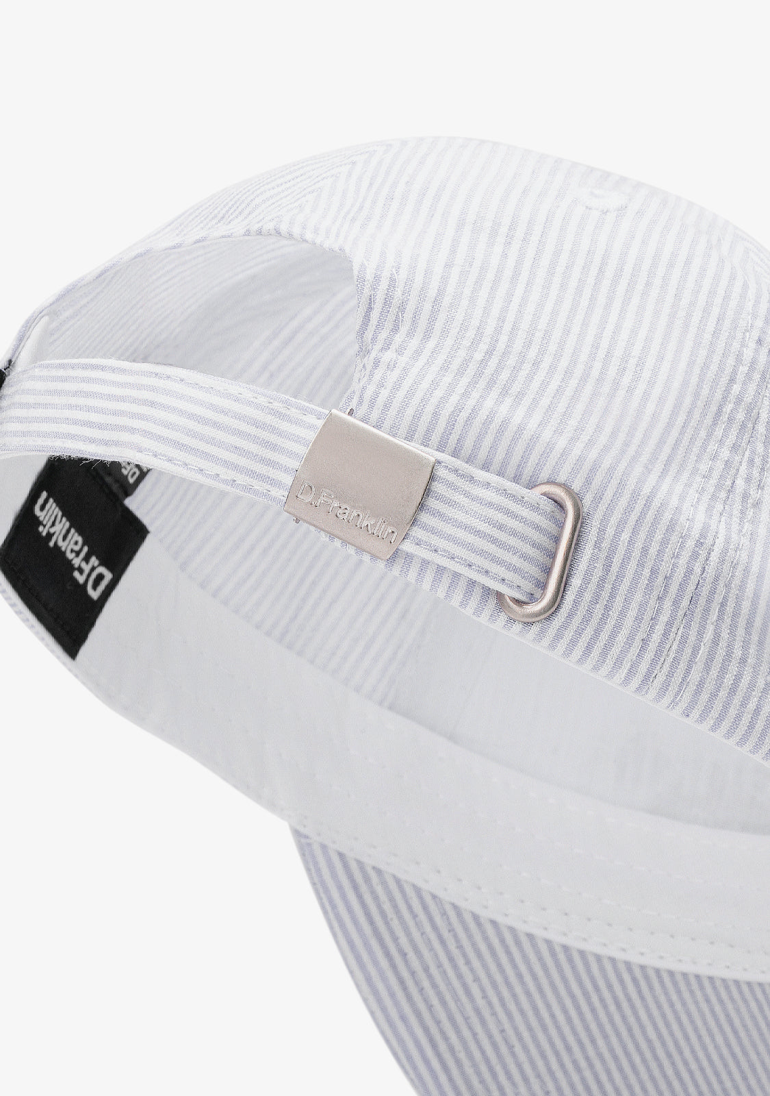 This design features a curved visor and a black D.Franklin label on the inside. Adjustable silver back closure with engraved D.Franklin logo.