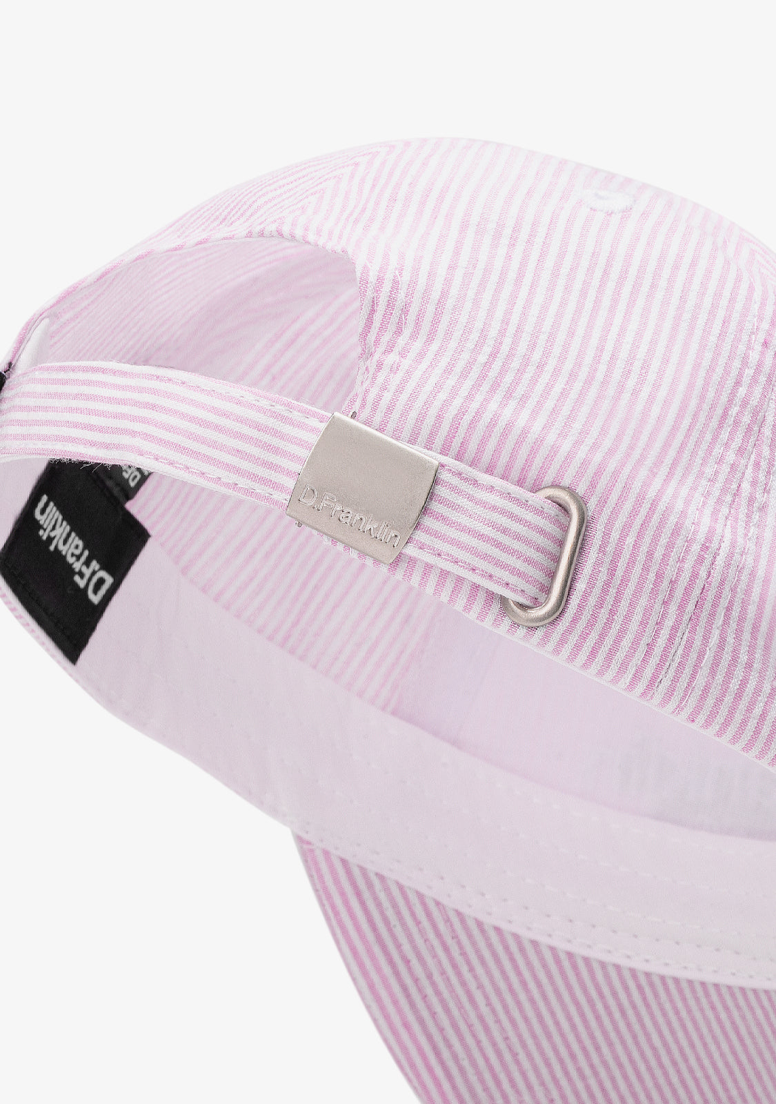 This design features a curved visor and a black D.Franklin label on the inside. Adjustable silver back closure with engraved D.Franklin logo.