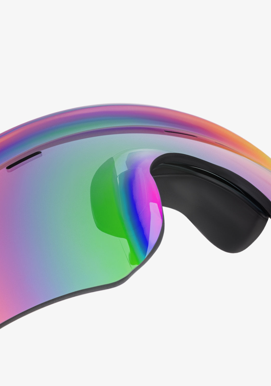 Rated Category 0–2, they are the perfect ally for high-sun training — from road cycling to trail running. The frameless, ultra-light TR90 frame with 6C curvature ensures a wraparound fit and lateral protection. Non-slip rubber pads and temple tips keep them stable, even in sweat or rain.