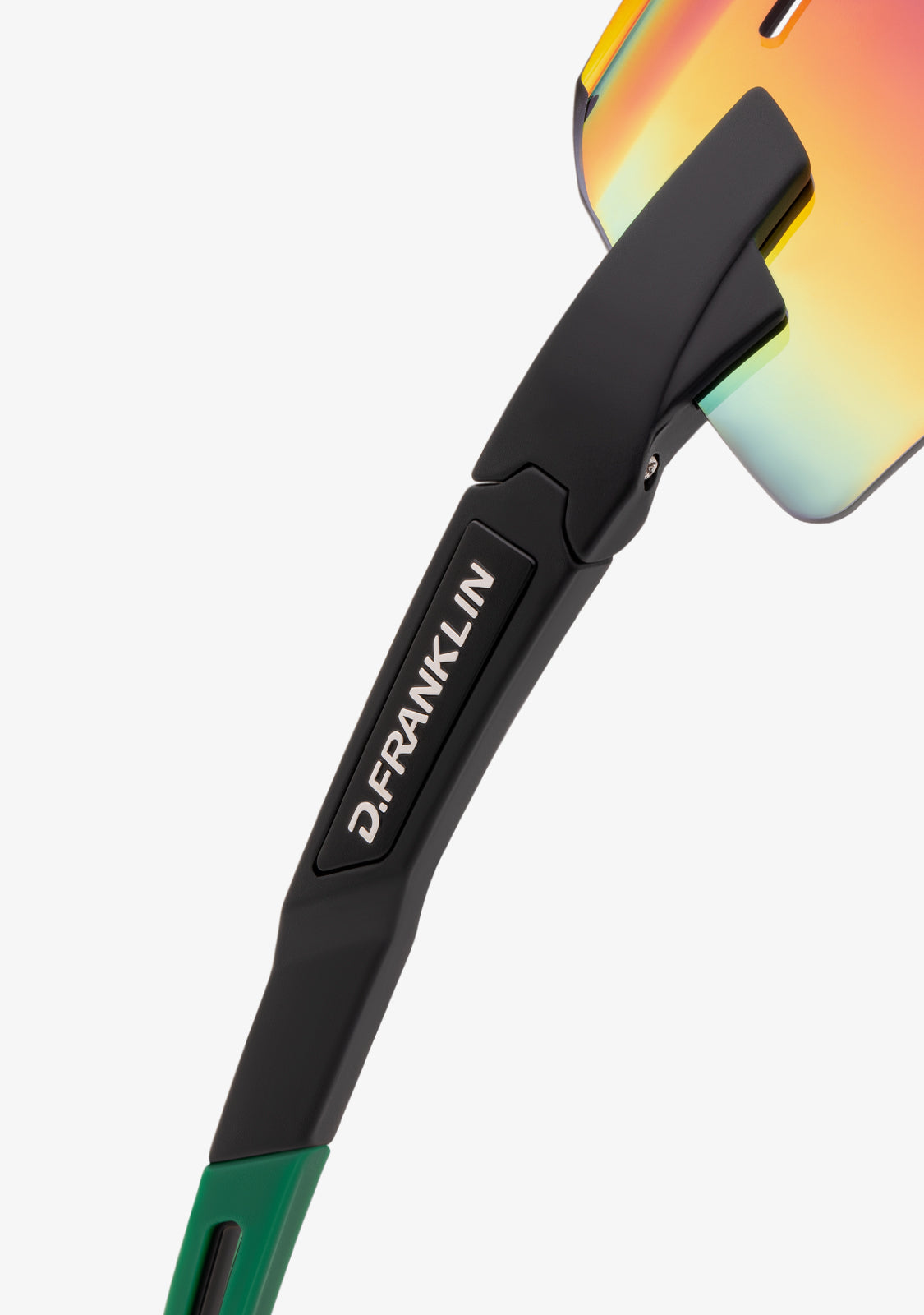 - Green Revo polycarbonate lenses: sharp visibility with sporty aesthetics