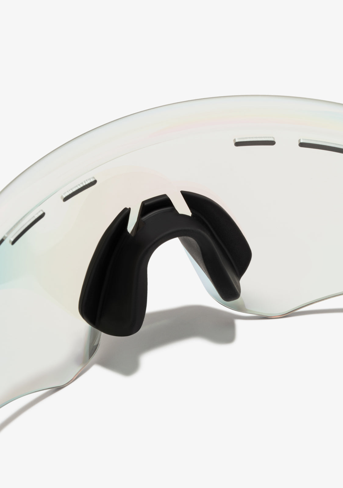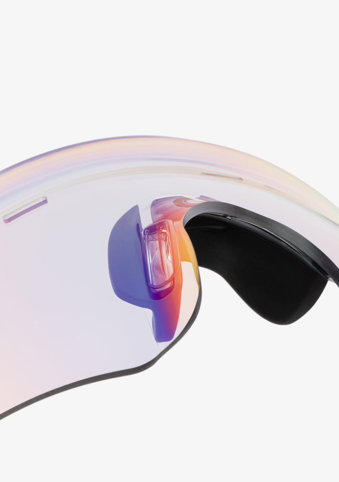 Rated Category 0–2, they are ideal for high-sun outdoor workouts — from road cycling to trail running. The frameless, ultra-light TR90 frame with 6C curvature ensures a wraparound fit and lateral protection. Rubberised nose pads and temple grips keep them securely in place, even in sweat or rain.