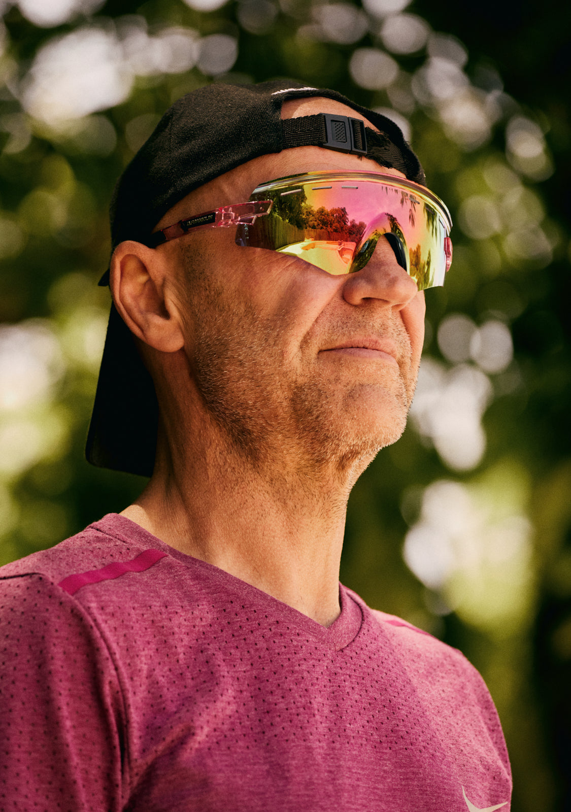 - Photochromic Smoke-Pink Revo polycarbonate lenses: optimal visibility with a sporty aesthetic