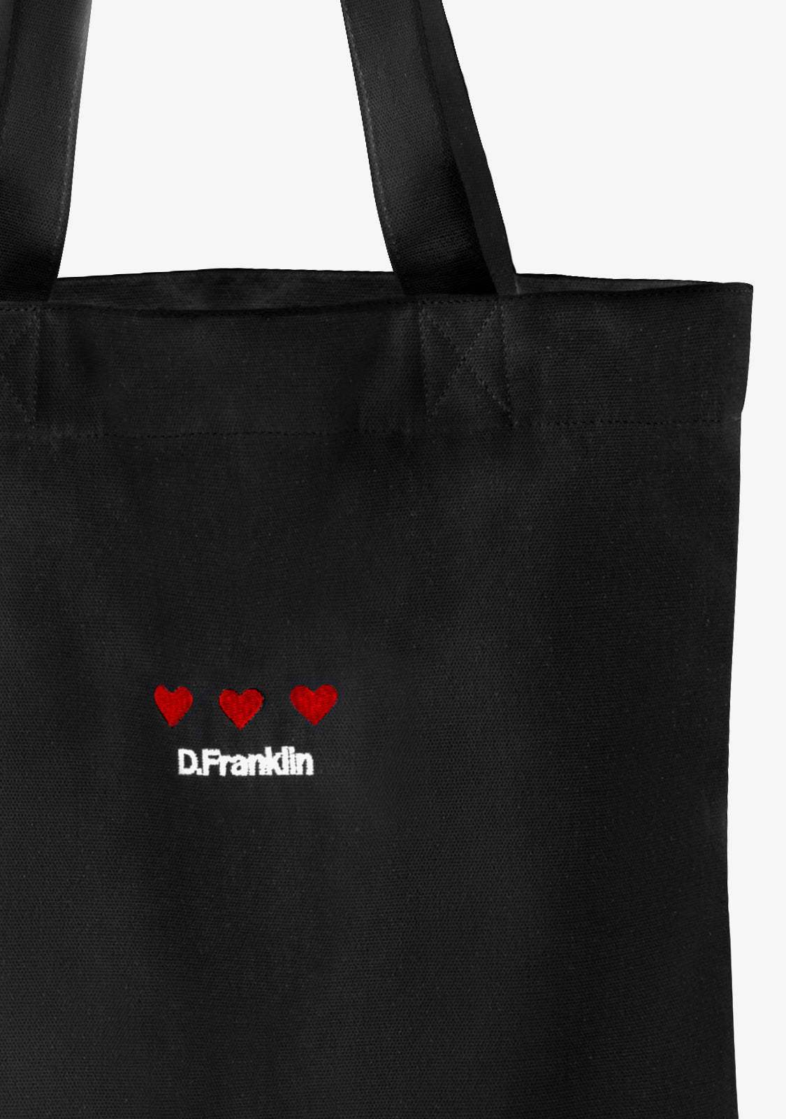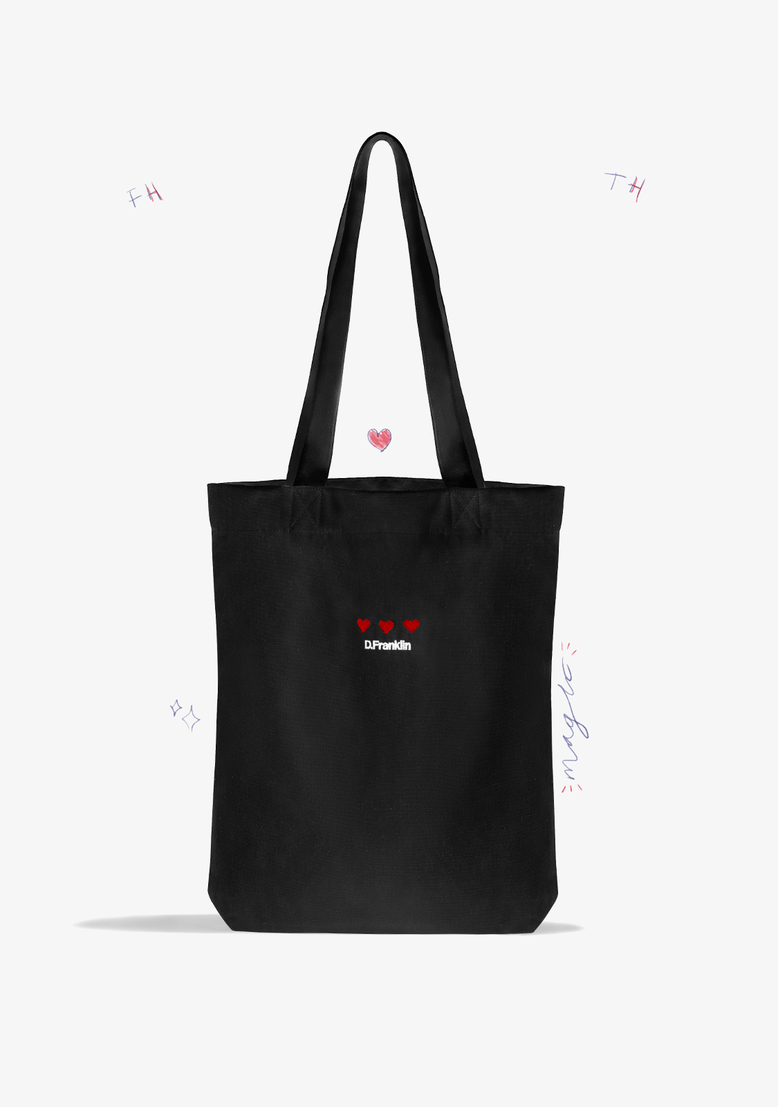 Tote bag made from recycled cotton and finished with distinctive graphics from the From Heart To Heart collection. Spacious design with long handles and cross-body gusset.