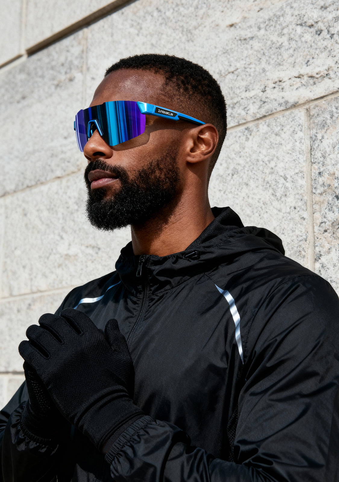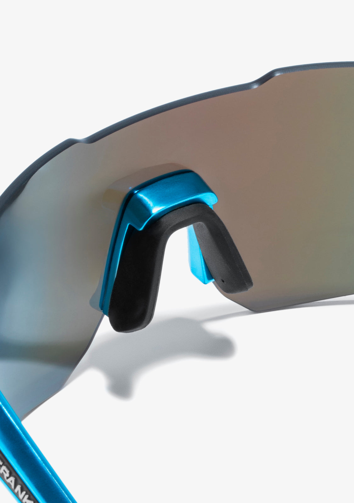 Mirrored sunglasses with high-tech aesthetics. Immerse yourself in a curved design inspired by the speed of the waves. Aerodynamic sunglasses created to break up your style.