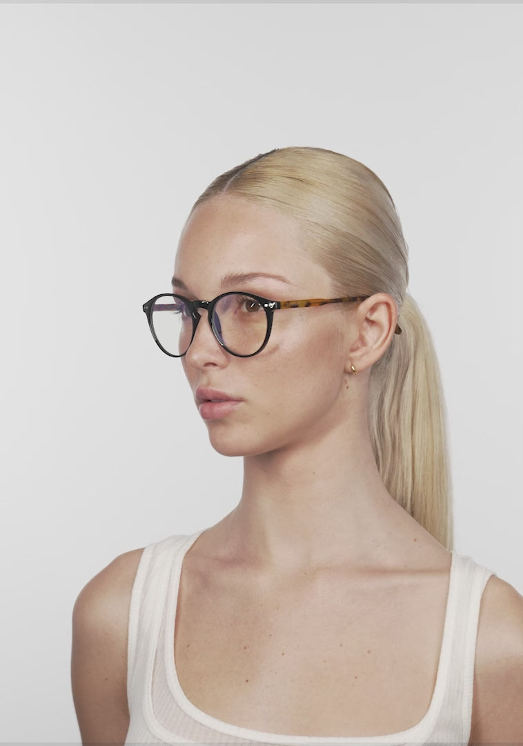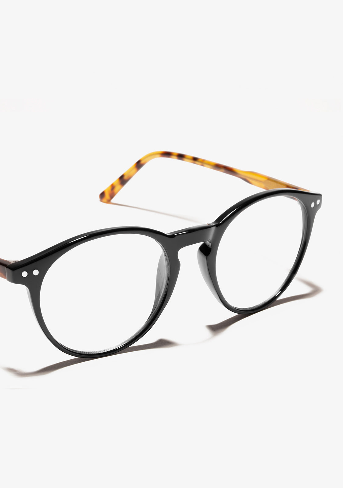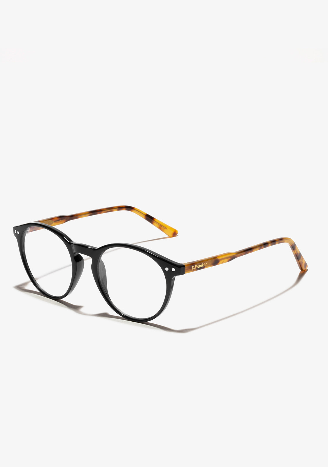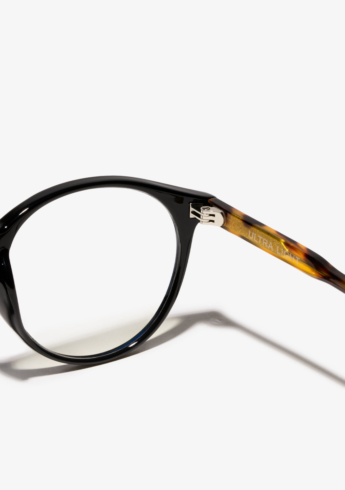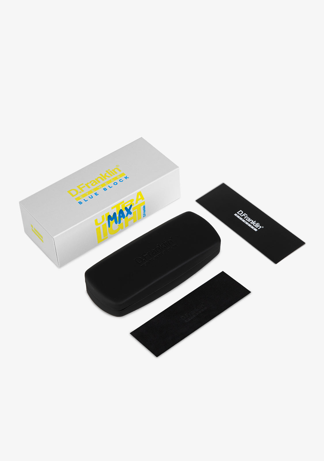 The Ultra Light Max Limited Edition renews one of the most iconic D.Franklin® collections by increasing the size of its frame and improving comfort to turn round glasses into a must have. The Ultra Light Max Black / Blue Block stand out through the total black finish
