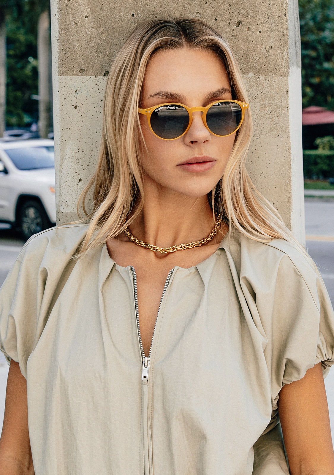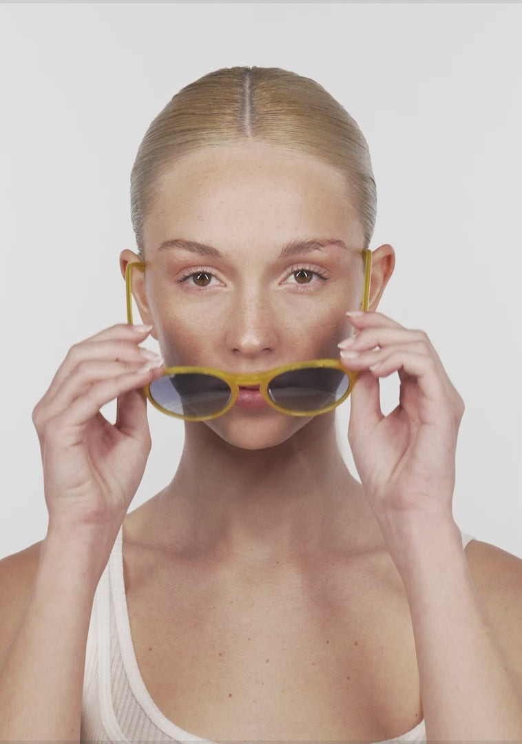 With an essence all their own. We took inspiration from the latest trends and iconic retro details to create these distinctive sunglasses. The design combines a sleek aesthetic with a rounded frame for a unique, unmistakable brand look. Unisex model designed for an iconic style.